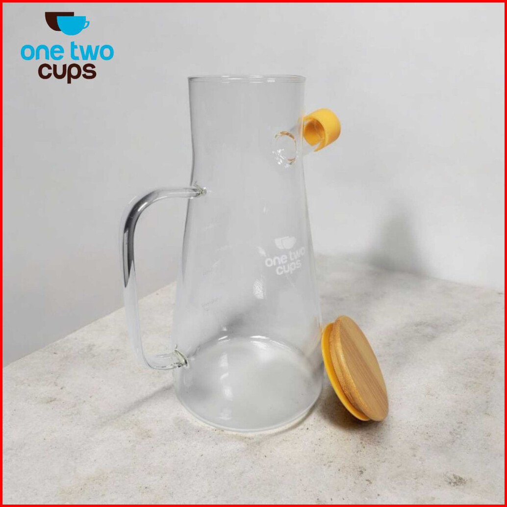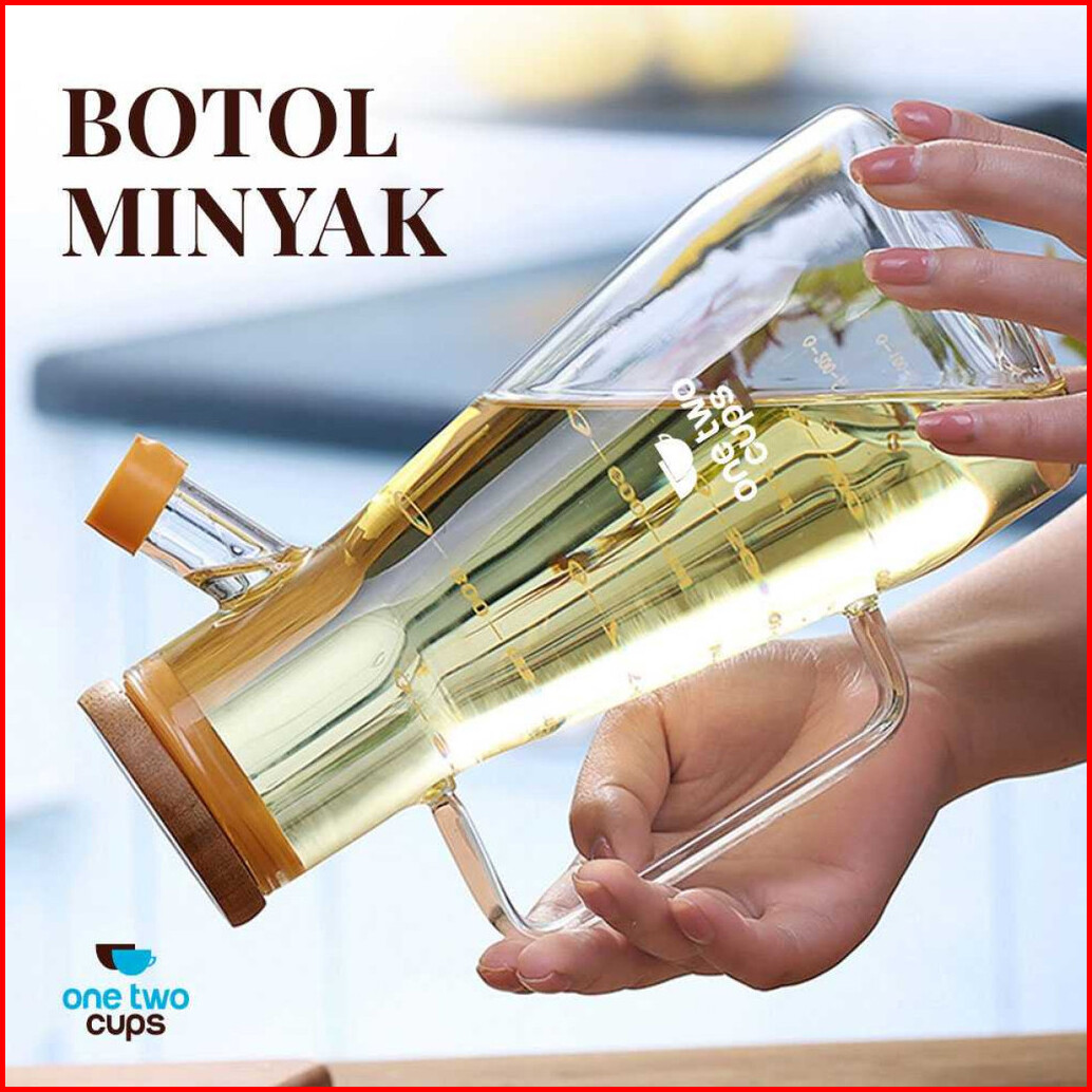 One Two Cups Botol Minyak Kaca Borosilikat 900ml Dengan Tutup Kayu Wadah Minyak Goreng Elegan