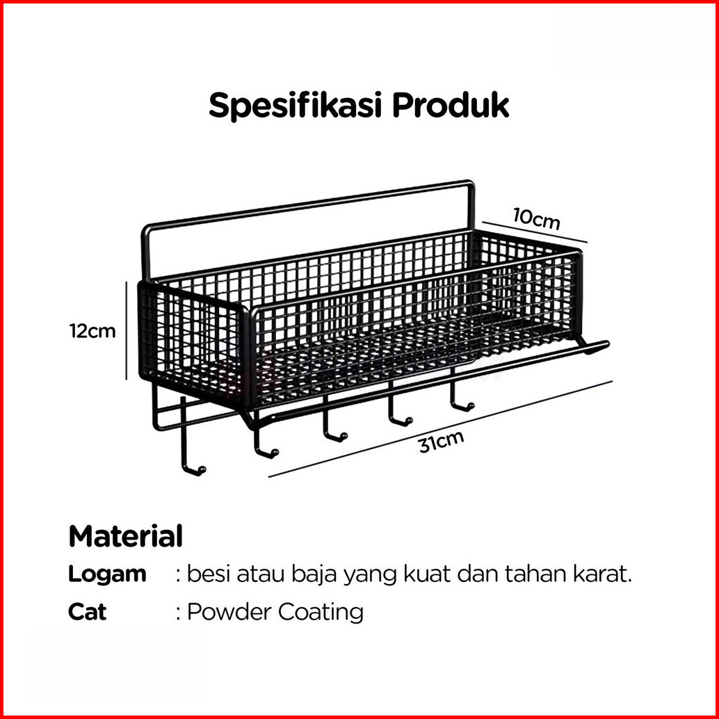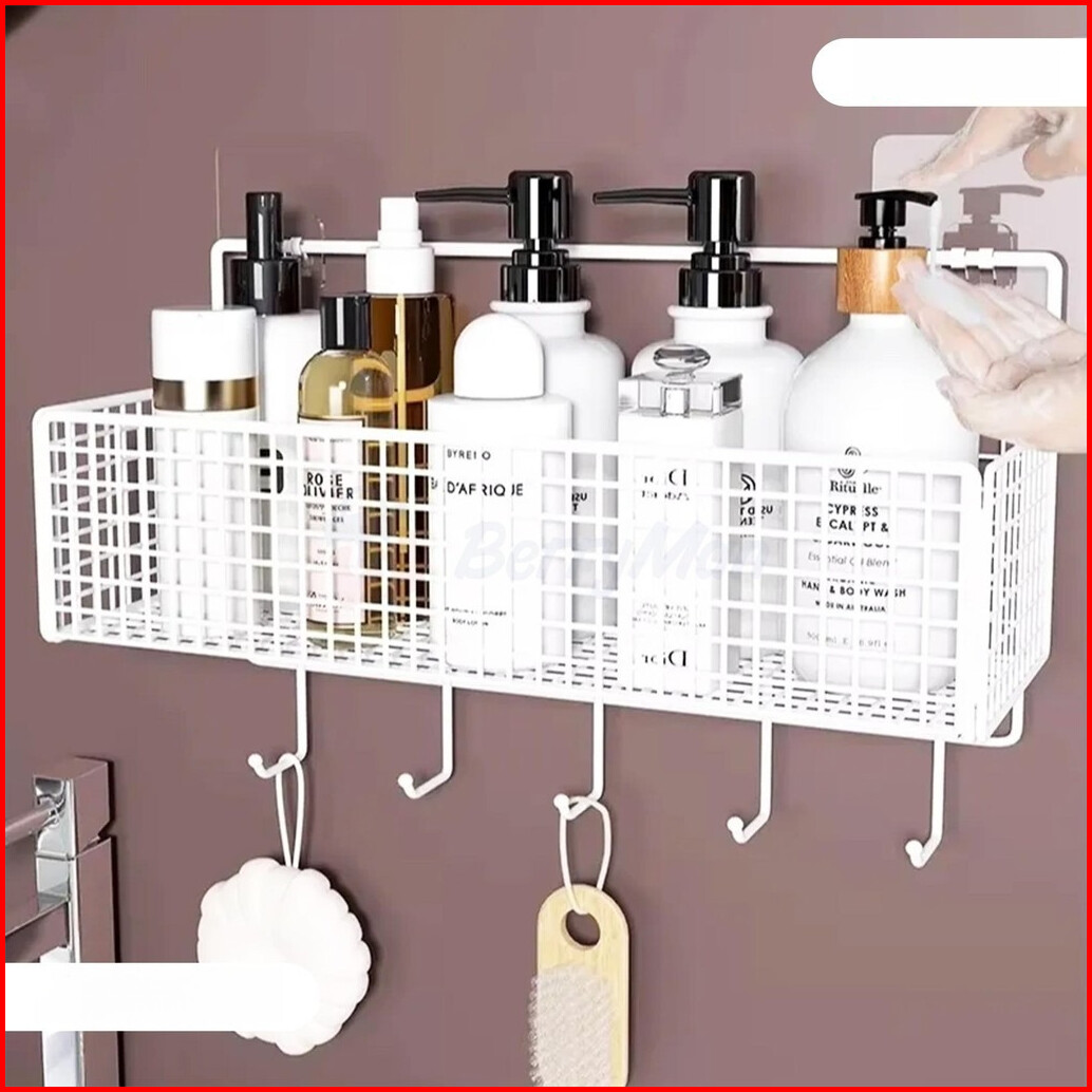 Rak Besi Kamar Mandi Persegi Rak Sabun Shampo Rak Gantung Tempel Dinding Keranjang Bumbu Dapur