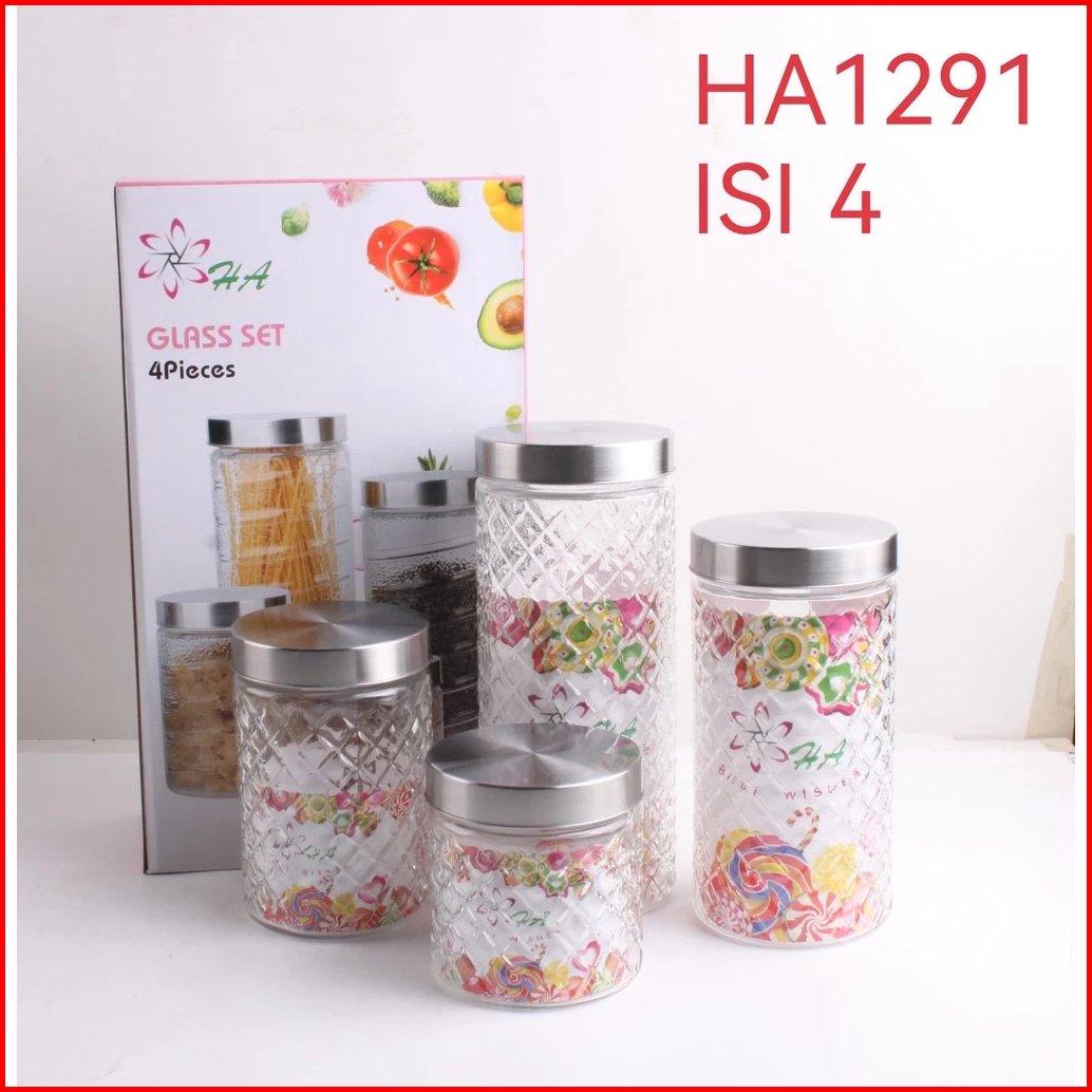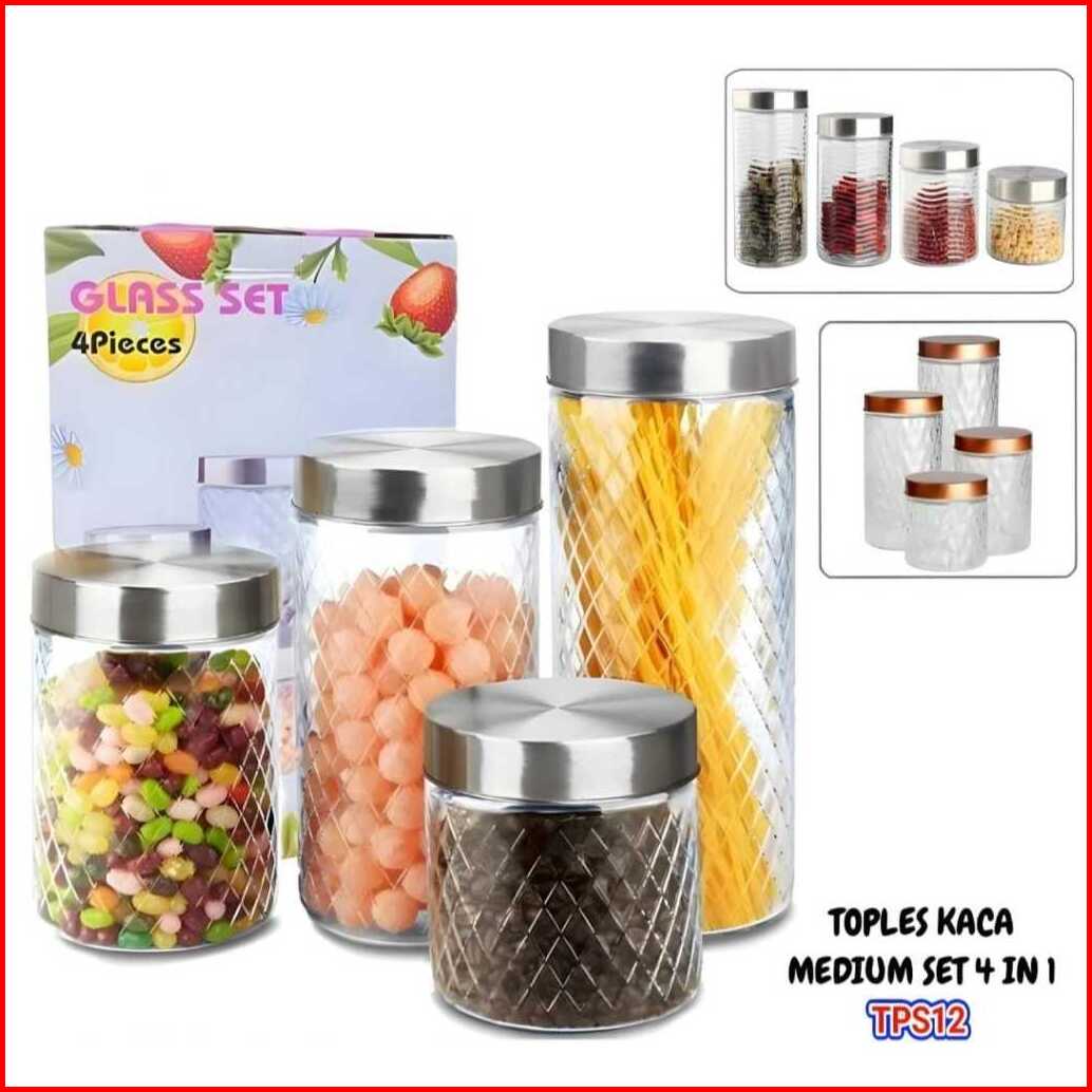 Toples Set Kaca Bening Diamond Glass 4 Pcs Tempat Penyimpanan Kue Lebaran Aesthetic High Quality