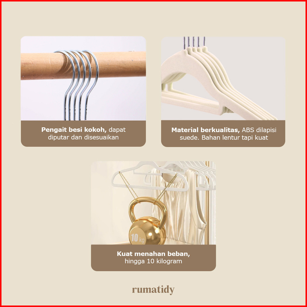 Rumatidyhana Gantungan Baju 10pcs Hanger Suede Anti-slip