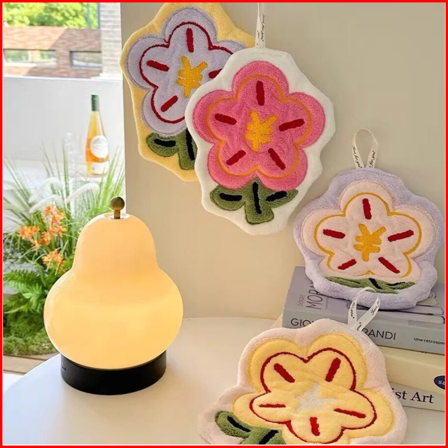 Handuk Tangan Motif Bunga Lucu Lembut Lap Tangan Gantung Hand Towel Dapur Lap Tangan Aesthetic