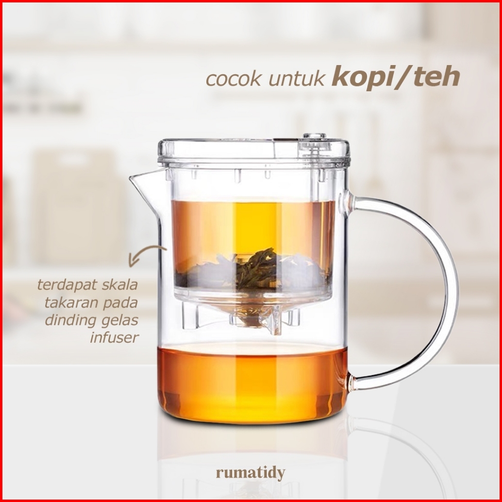 Rumatidy Crema Tea Infuser Coffee Maker Cangkir Teh Kopi Dengan Saringan Teh Kopi Dispensing Teapot