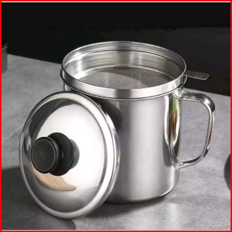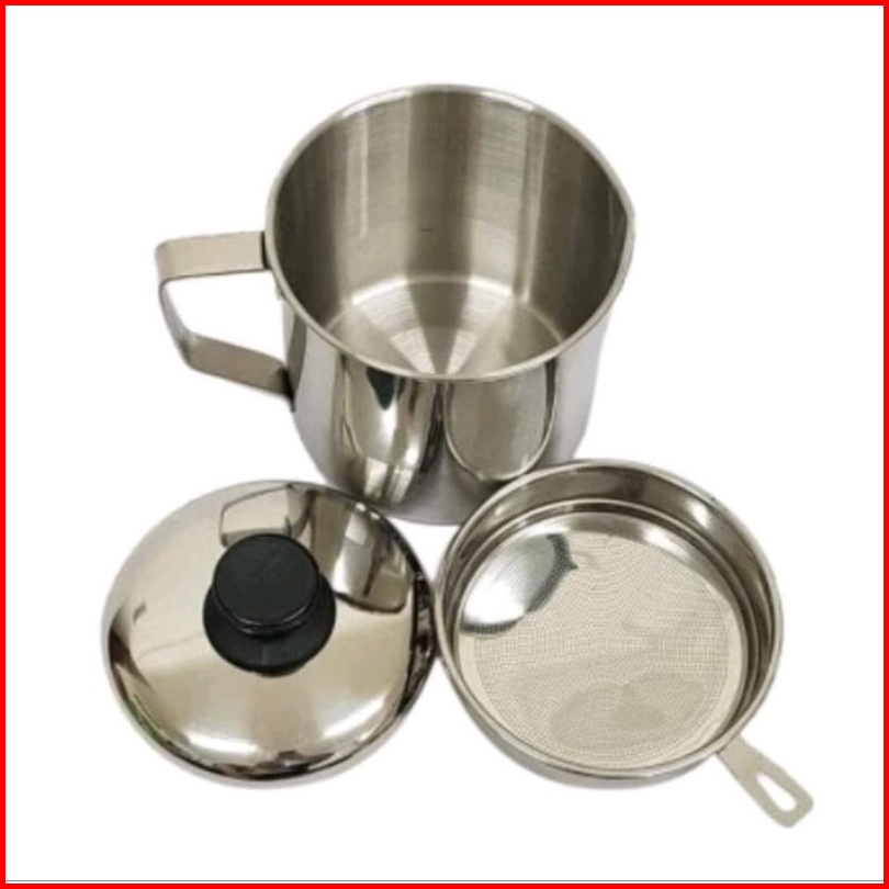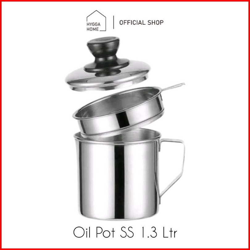 Hygga Home Oil Pot Stainless Steel 1.3 Ltr Tempat Wadah Saringan Minyak