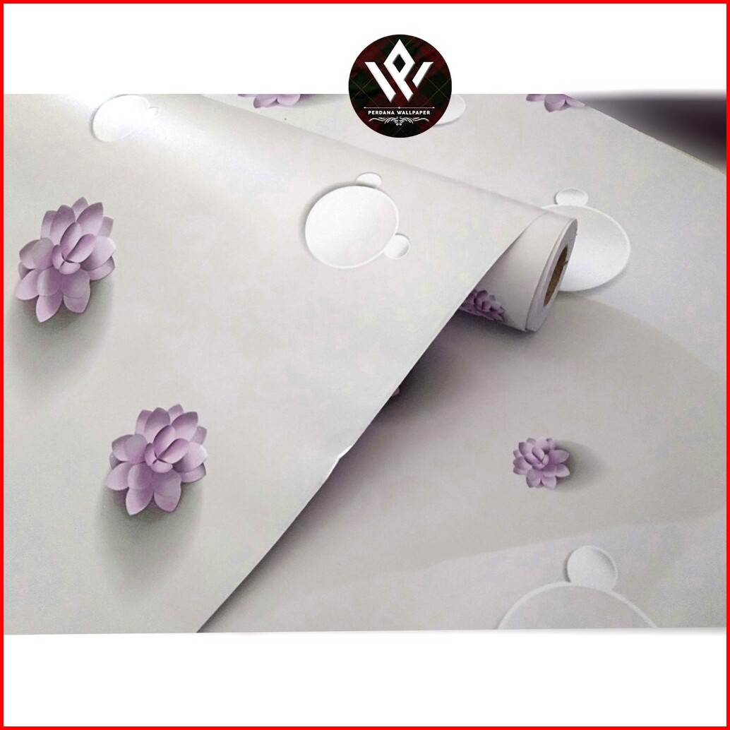 Kembang Air Ungu Wallpaper Stiker Dinding 10meter X 45 Cm Bahan Pvc Anti Air Perdana Wallpaper