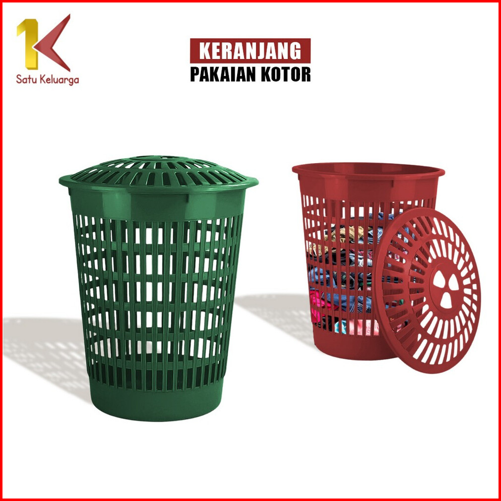 Satu Keluarga Keranjang Baju Kotor Bulat Set Tutup C1257 Laundry Basket Keranjang Cucian Pakaian