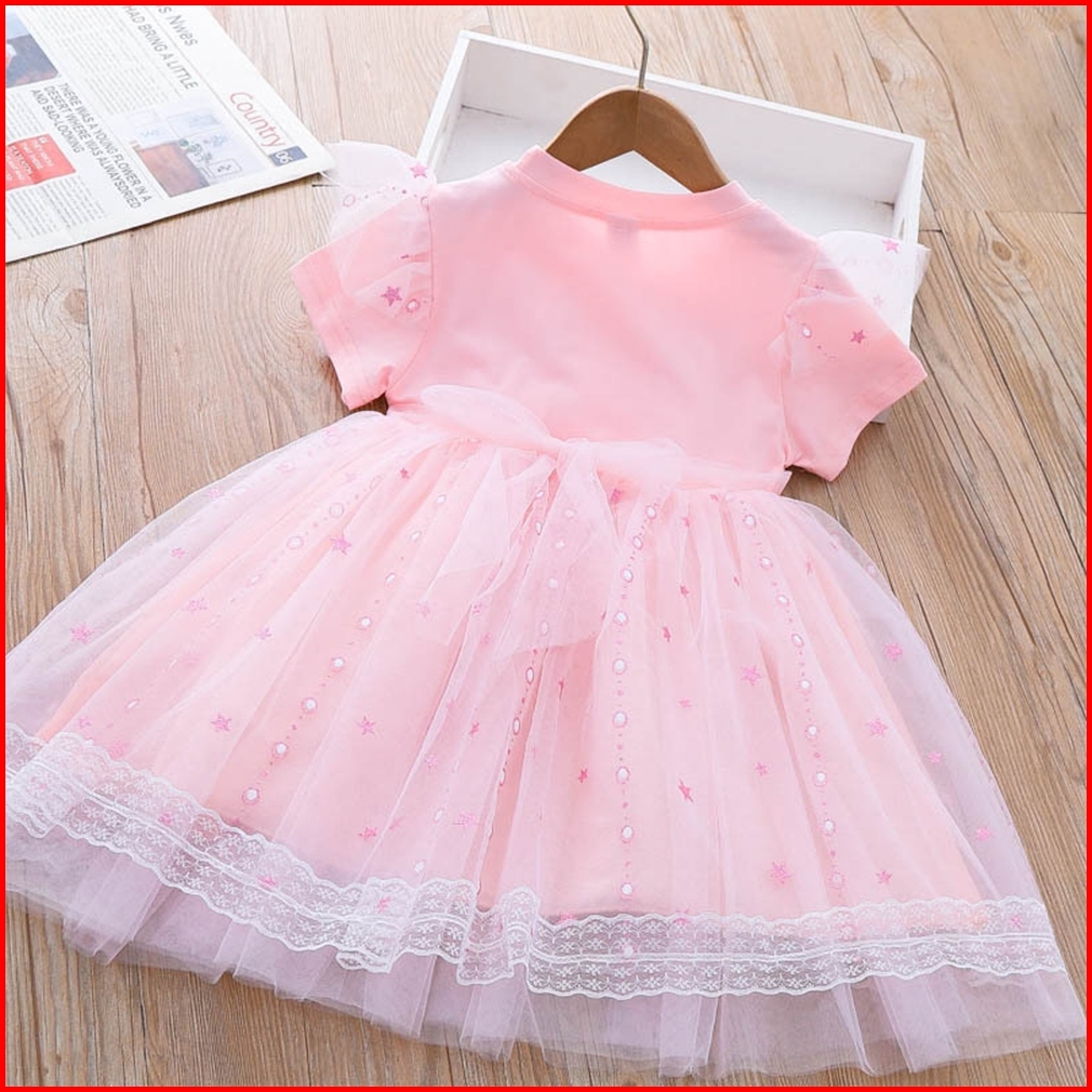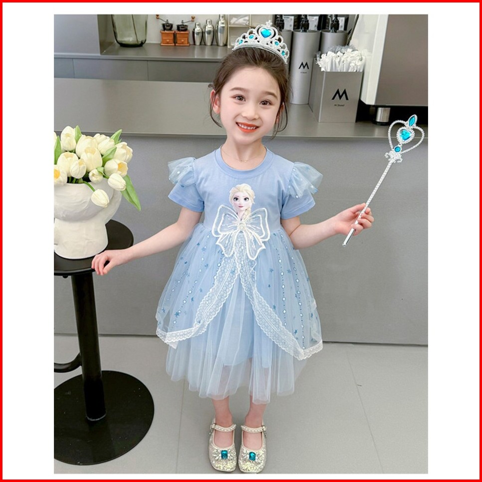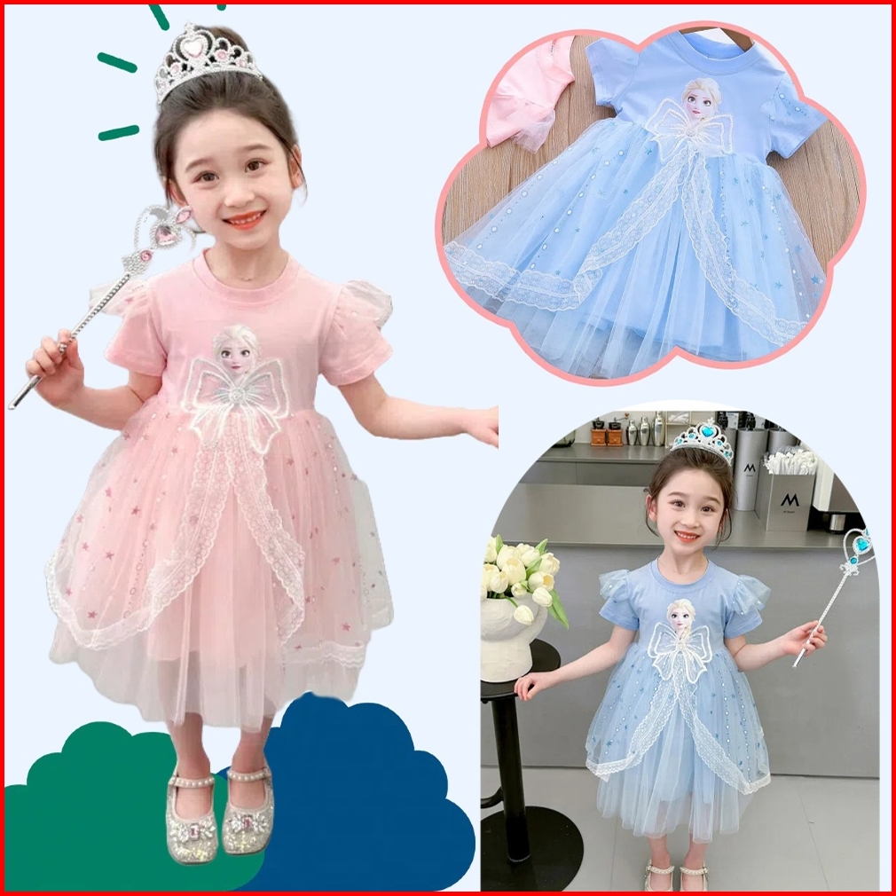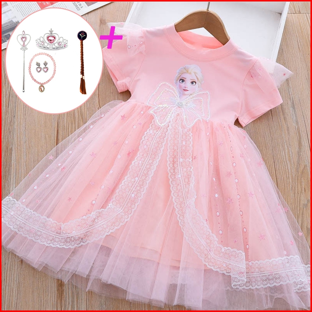 Gaun Renda Berkedip Merah Muda Elsa Putri Beku Anak Perempuan 2-8 Tahun Hadiah Gratis Set 6 Buah