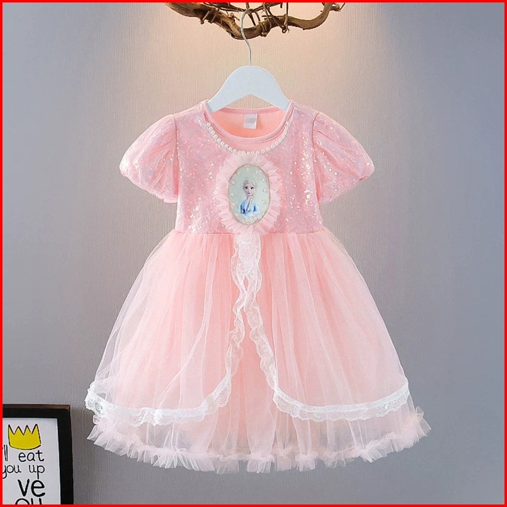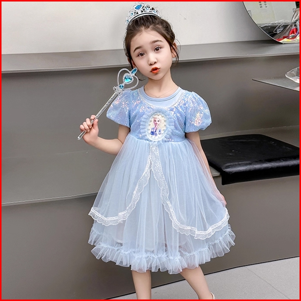 1-8 Yrs Gaun Tutu Ulang Tahun Anak Perempuan Gaun Renda Payet Berkedip Putri Frozen Elsa