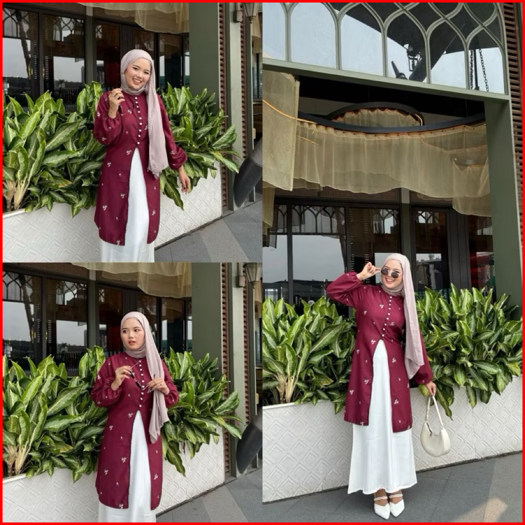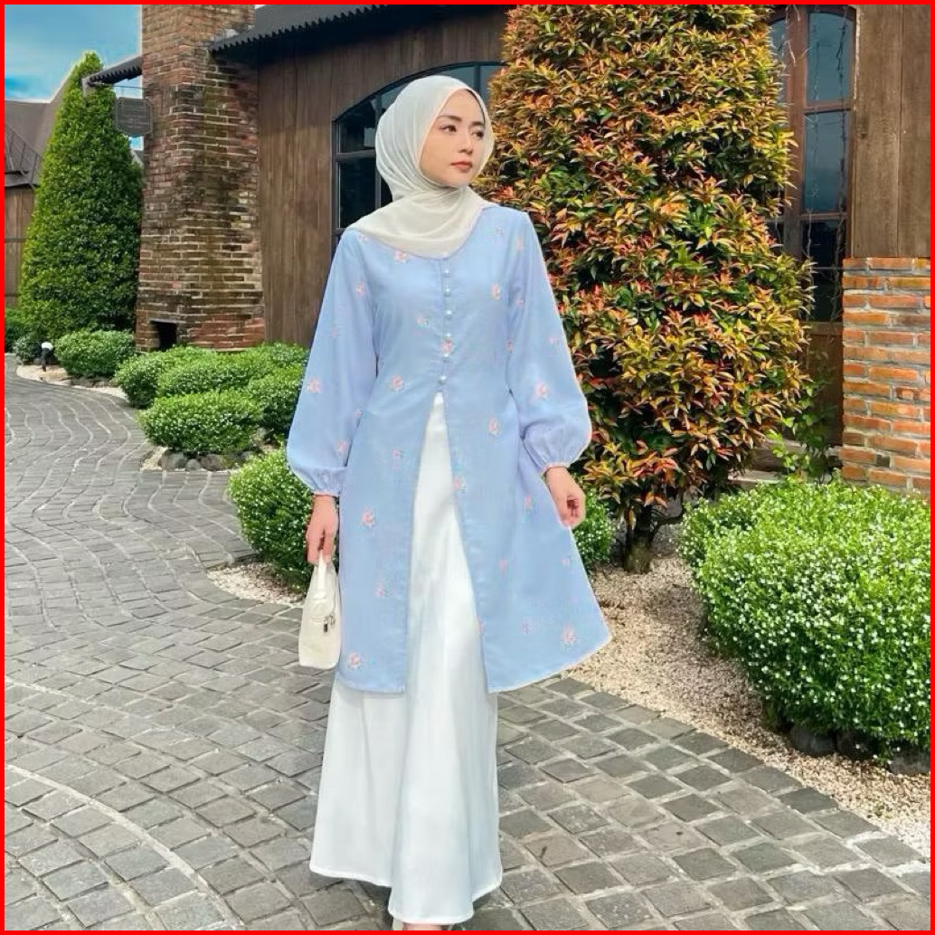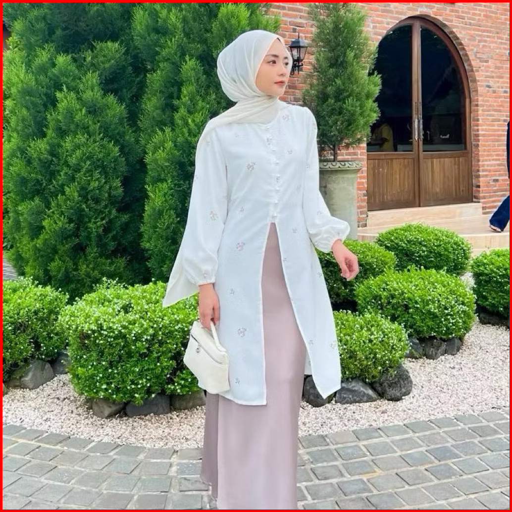 Serana Ofc - Aseca Tunik Melayu Shakila Willow Premium Slit Tunik Sabila Motif Bunga