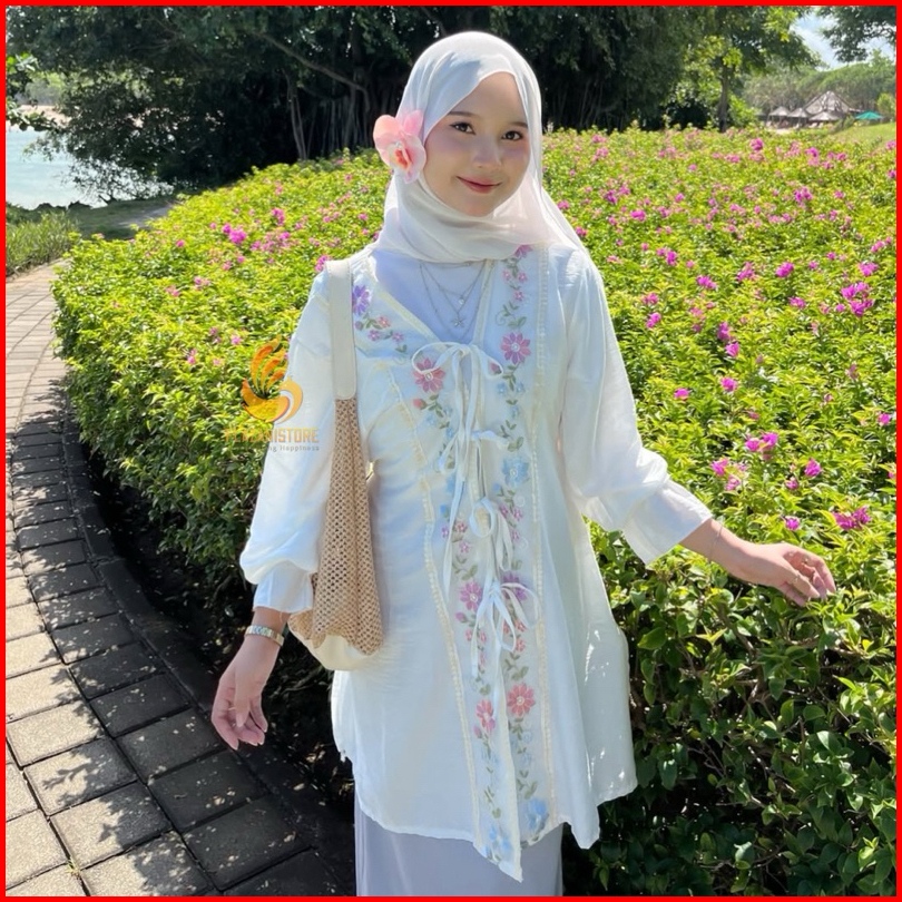 Daisy Long Tunik Tali Bordir Semi Outer - Tunik Outer Tali Wanita Vintage