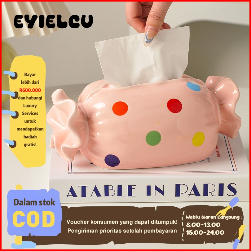 Eyre Bingkai Tisu Keramik Permen - Dekorasi Lucu Dan Mewah Untuk Meja Ruang Tamu Gaya Minimalis Mewah