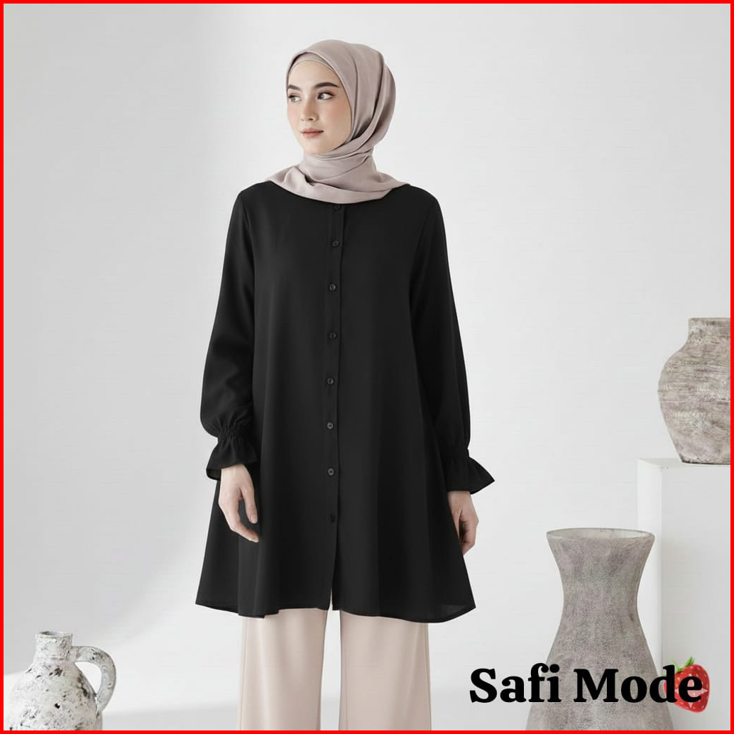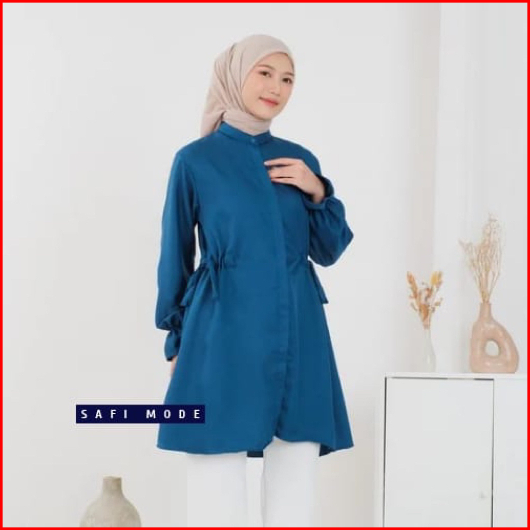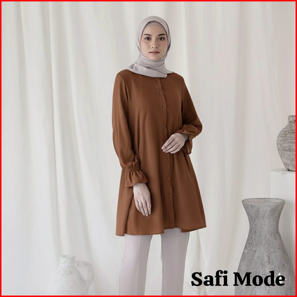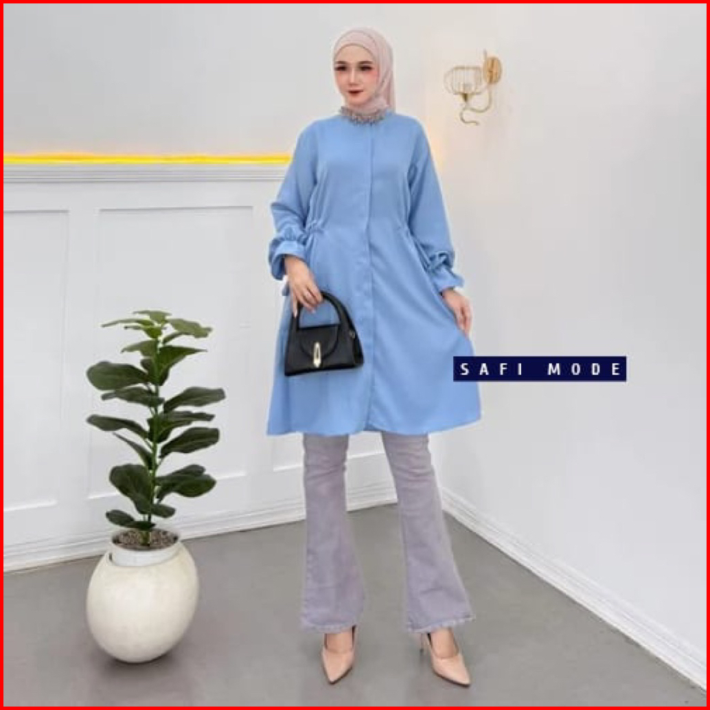 Kemeja Long Tunik Shakila Lengan Kerut Pakaian Muslim Wanita Outfit Hijab
