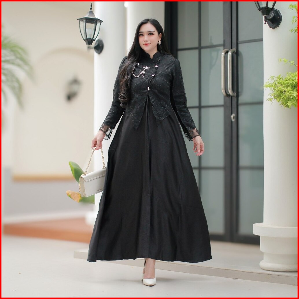 Gamis Sahara Lebaran 2026 Dress Janggan Busui Friendly Gaun Pesta Velvet Mix Brukat Mewah Elegan