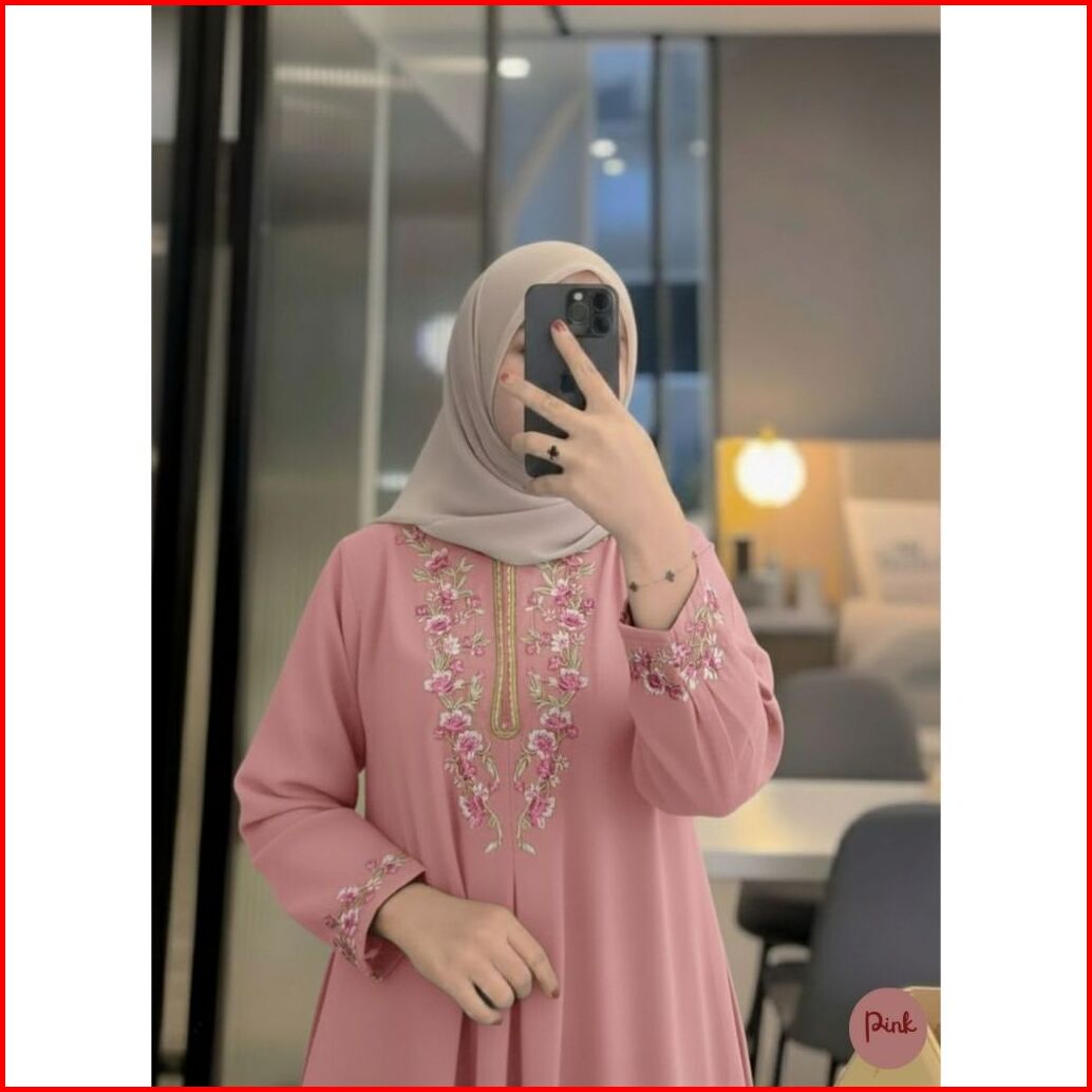 Mecca Dres Gamis Lebaran Borrdir Crinkle Premium Tali Samping Gamis Hari Raya Abaya Premium