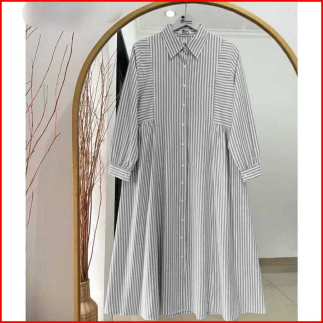Kemeja Tunik Wanita Lengan Panjang Tunic Salur Terbaru Kekinian