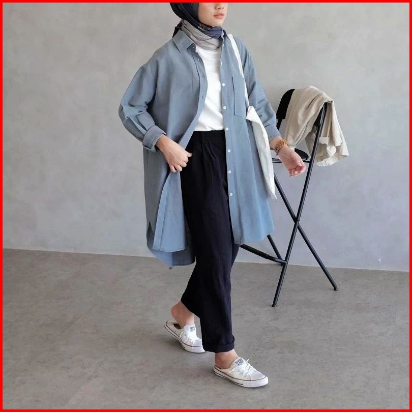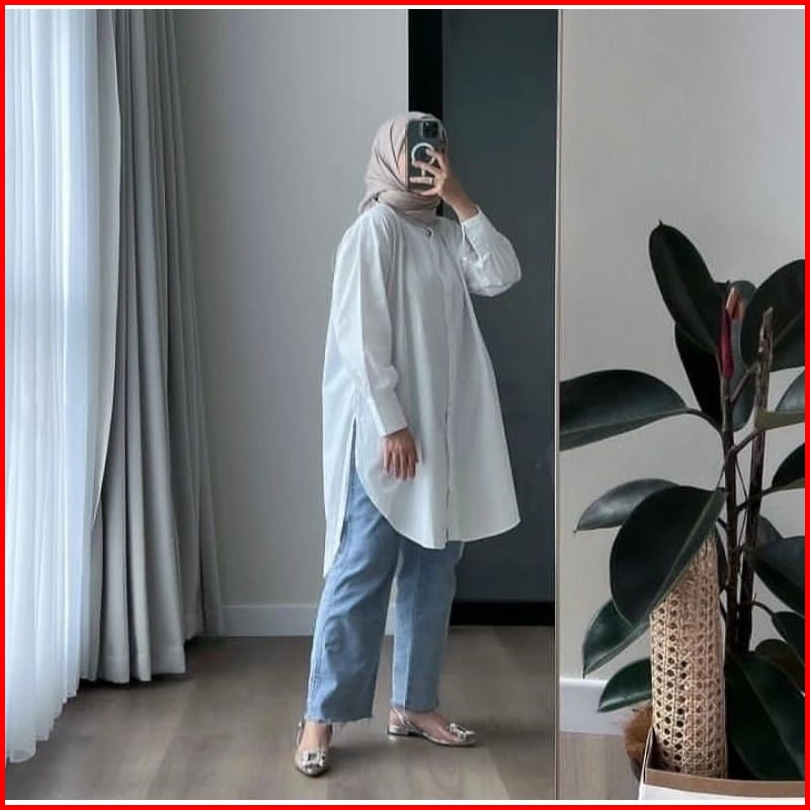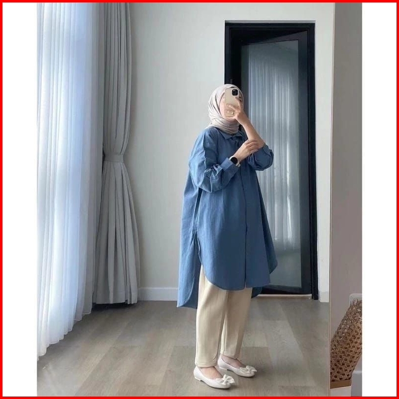 Oversize Tunik Polos Linen Kemeja Linen Wanita Kemeja Kancing Wanita Panjang Baju Cewek Linen Premium