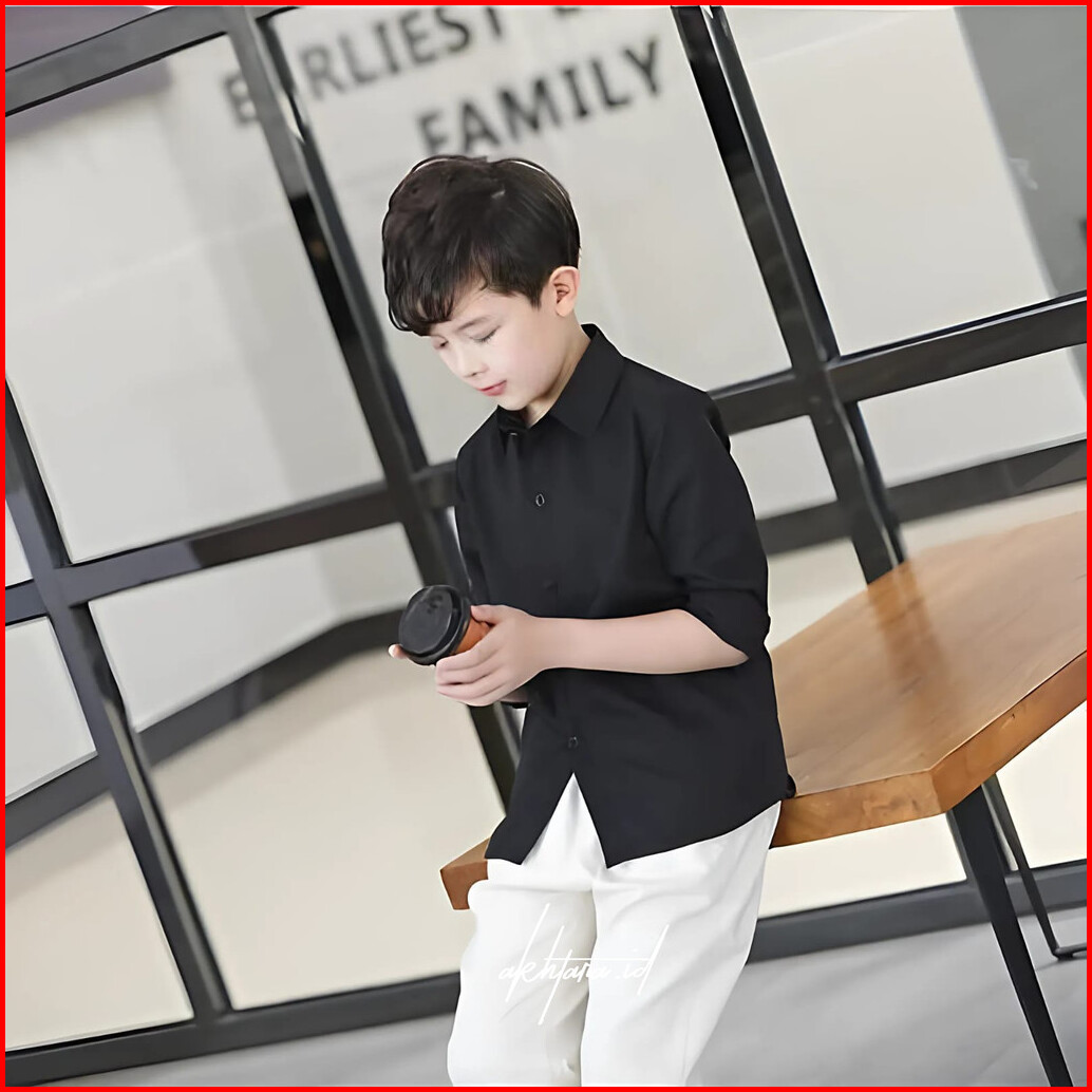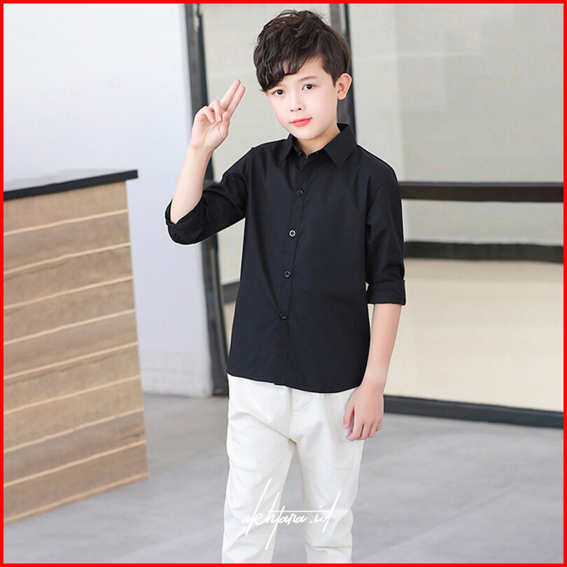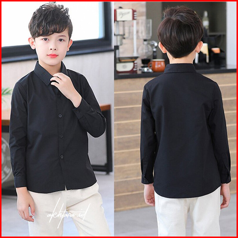 Kemeja Hitam Polos Basic Anak Cowok Tangan Panjang - Kualitas Distro Nyaman