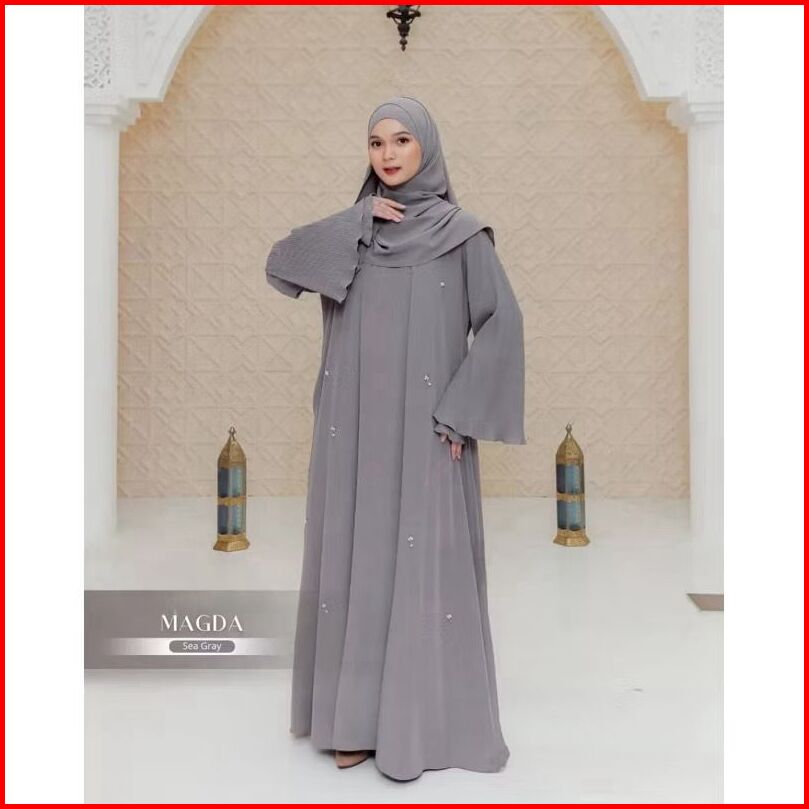 Abaya Gamis Terbaru 2026 Model Payet Tangan Plisket Jumbo Ld 140 Baju Lebaran Kekinian Simple Elegan Mahogany Burgundy