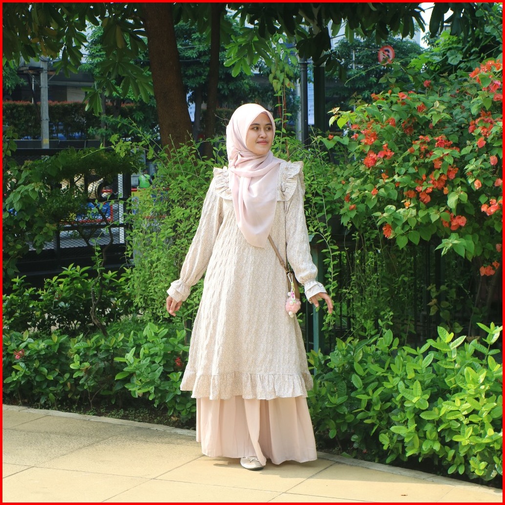 Alulane Lily Long Tunik Atasan Muslim Wanita Kekinian Motif Bunga