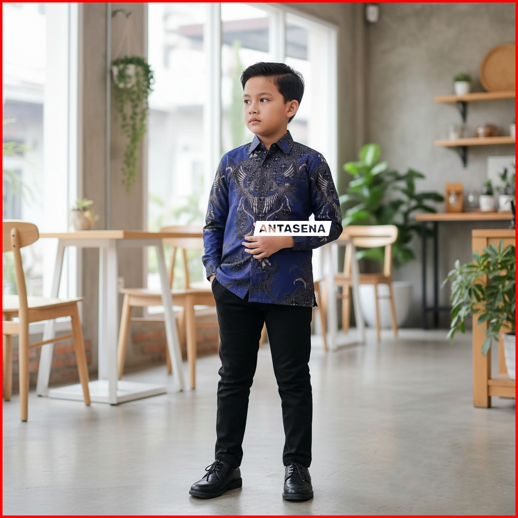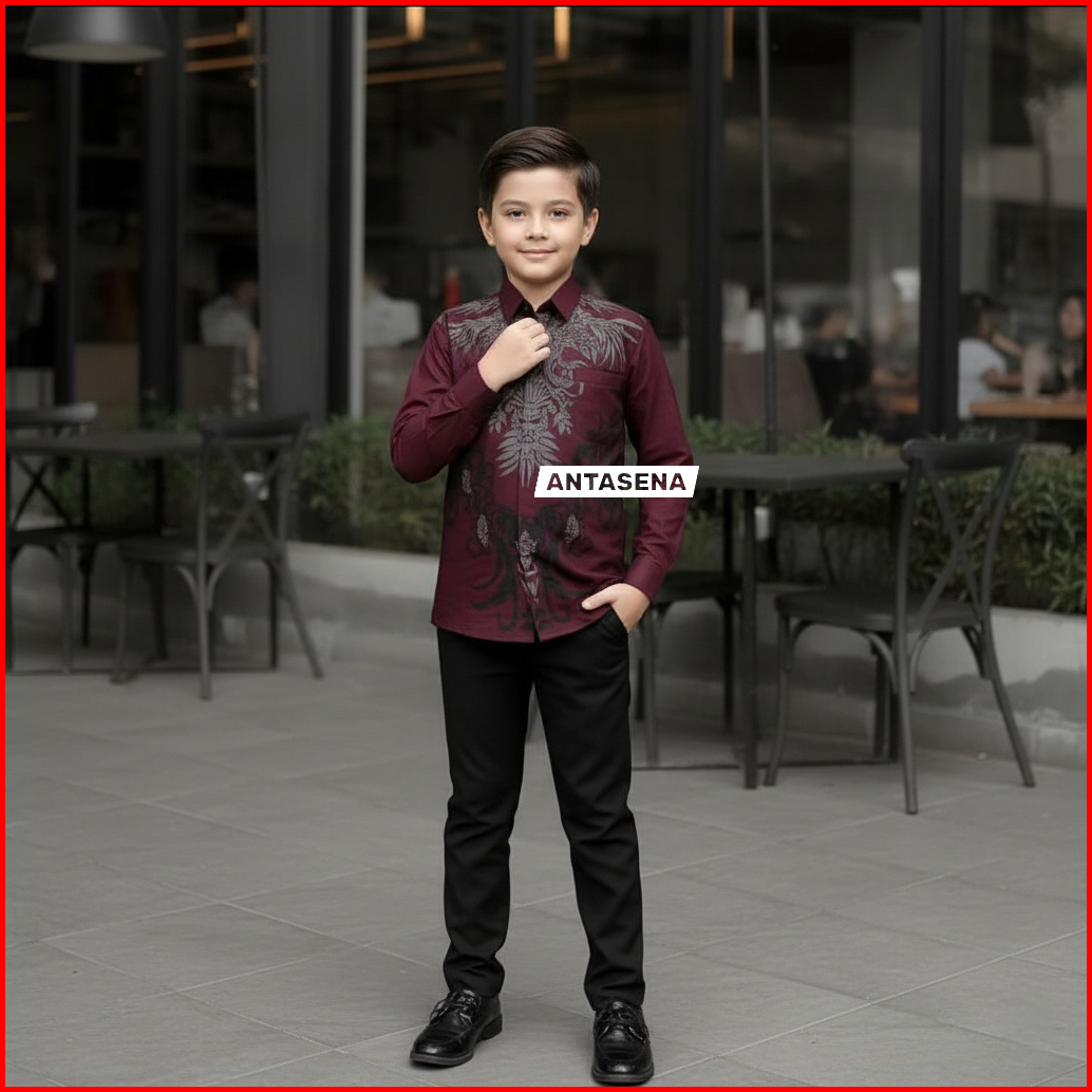 Antasena Style Kemeja Batik Anak Lengan Panjang - Batik Anak - Baju Batik Anak Laki Laki Umur 2-14 Tahun Hem Batik Anak