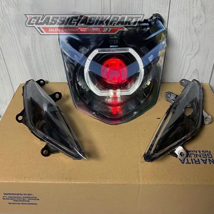 Lampu depan beat karbu lama custom biled plus lampu sein sen hitam smoke