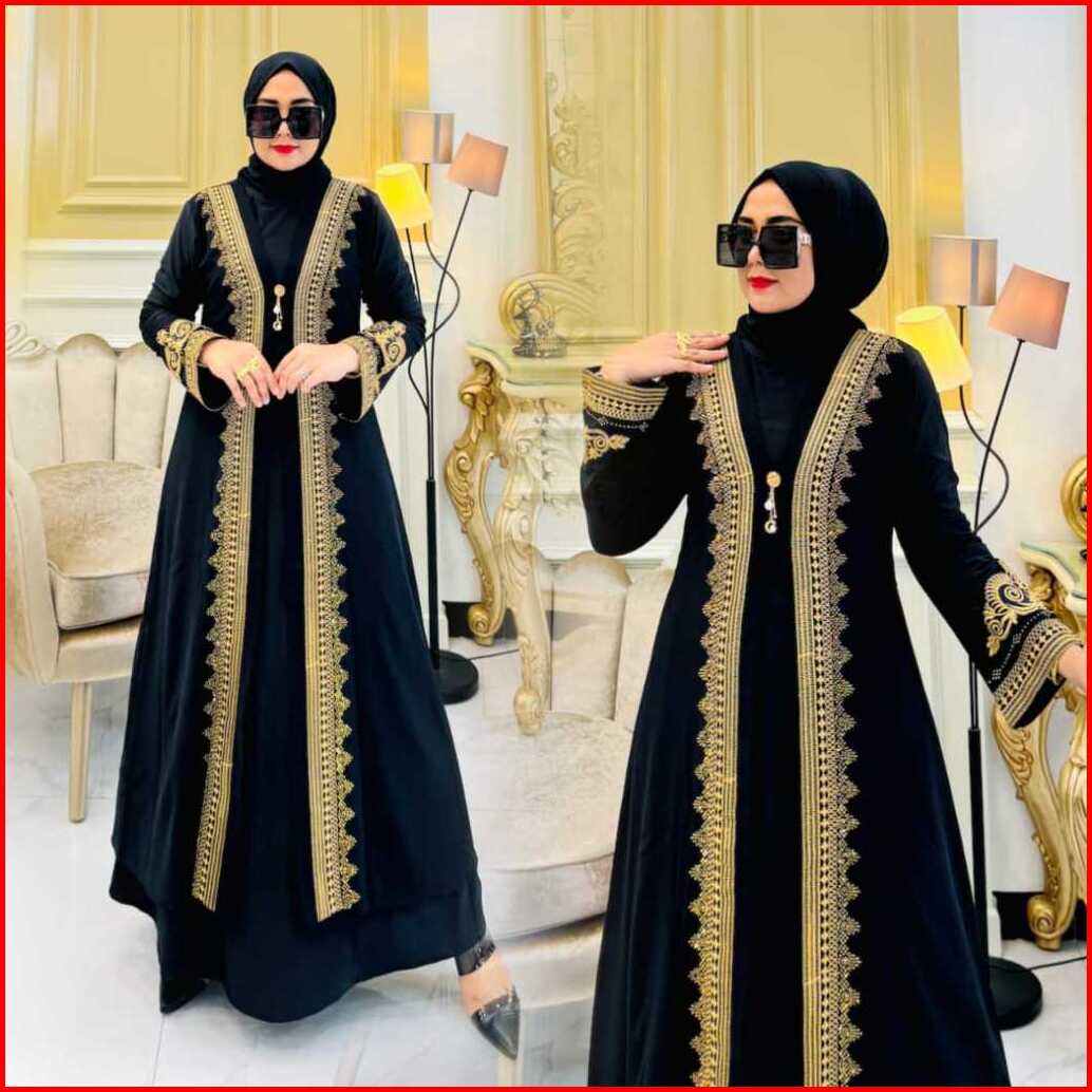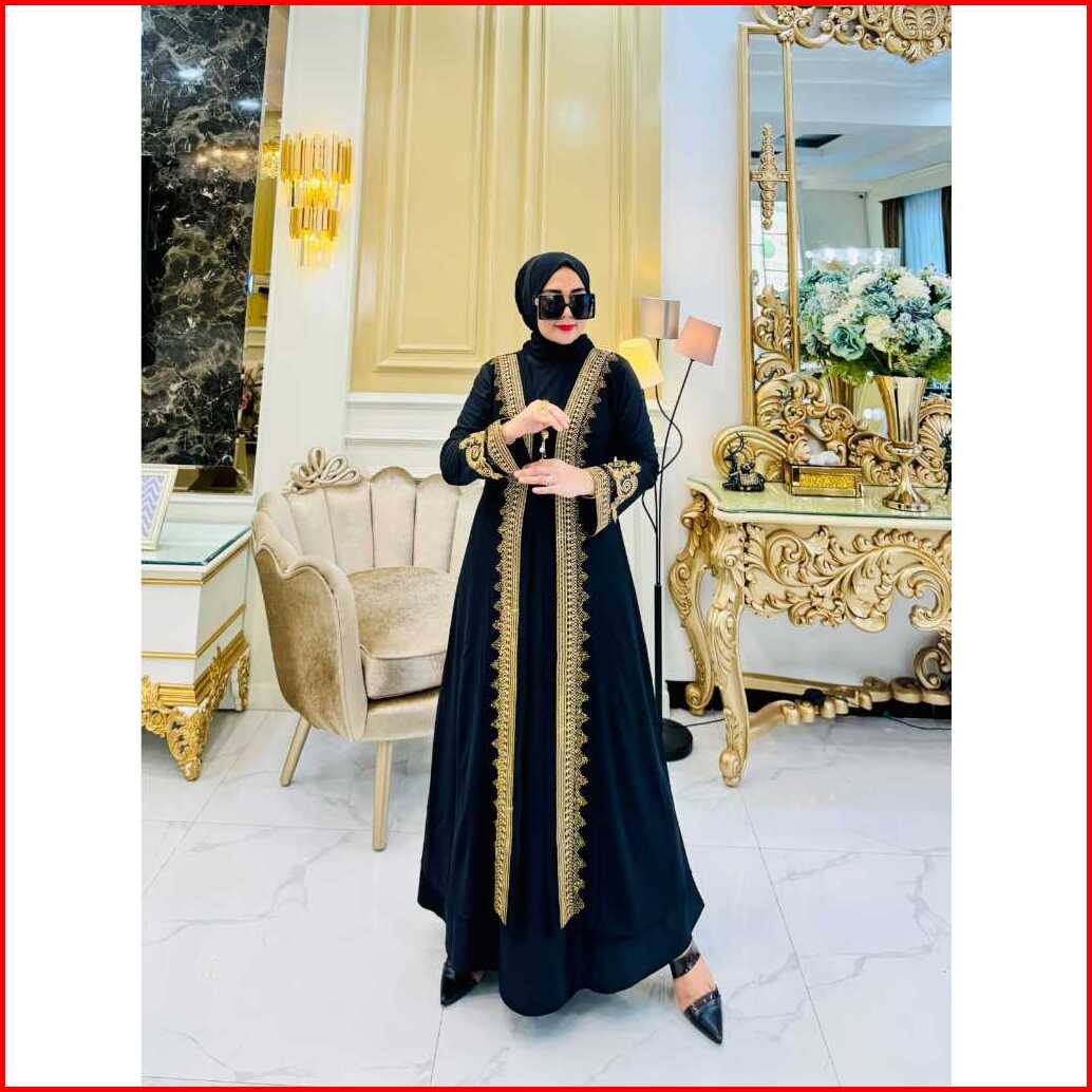 Gamis Abaya Hitam Turkey Bahan Jersey Mix Ceruty Bordir Baju Busana Maxi Dress Muslim Wanita - List