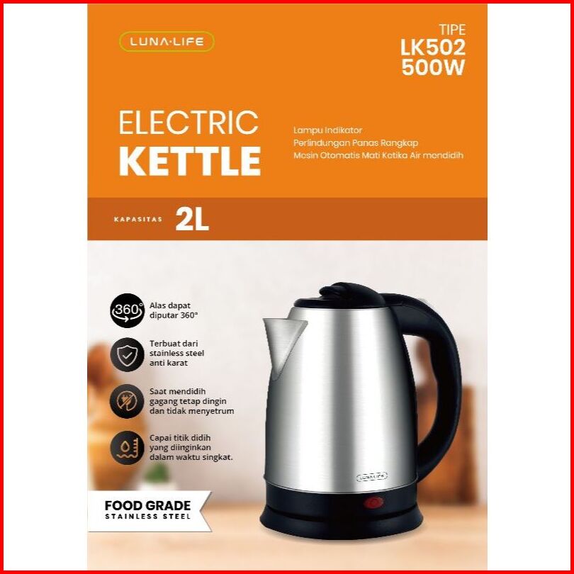Luna Life Teko Listrik Pemanas Air Elektrik Kettle Elektrik Kapasitas 2l Lk-502 Hitam