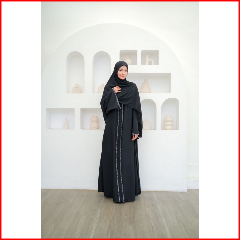Elzeeva Mahira Abaya Outer Abaya Diamond Warna Hitam Size S M L Xl Untuk Umroh Haji Dan Lebaran