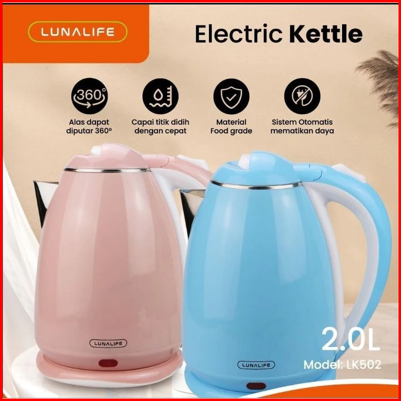 Lunalife Teko Listrik Pemanas Air Listrik Electric Kettle 2 Liter 500 Watt Warranty Sni