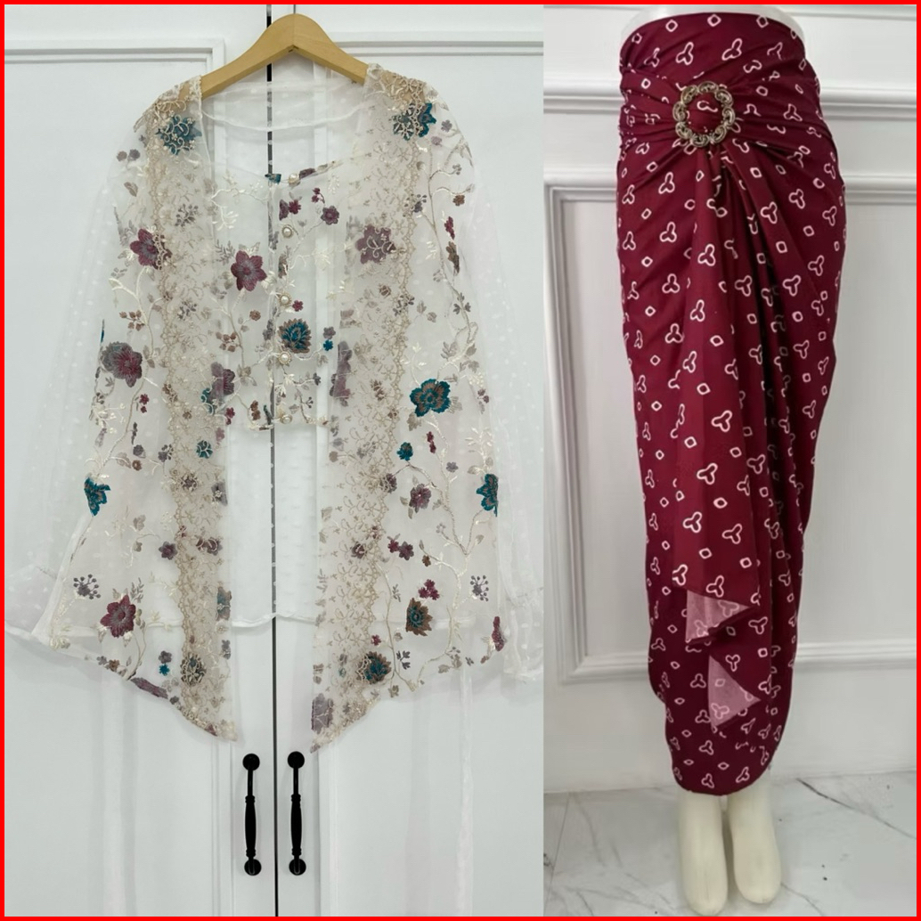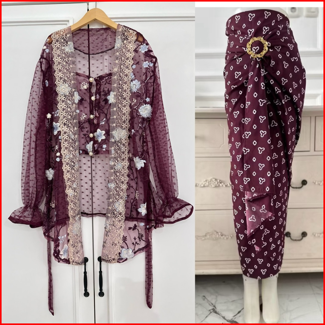 Set Kebaya Kutubaru Tile Garden Bunga-bunga