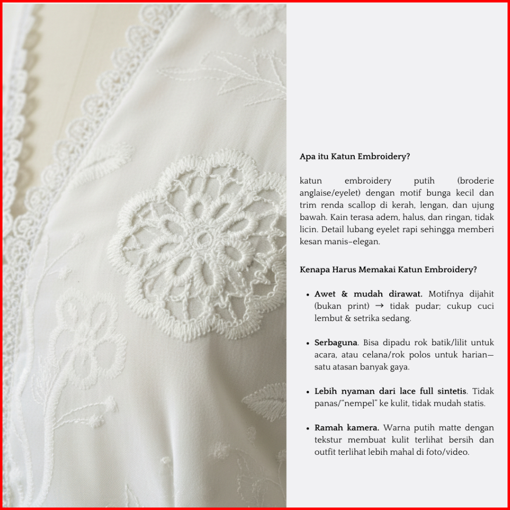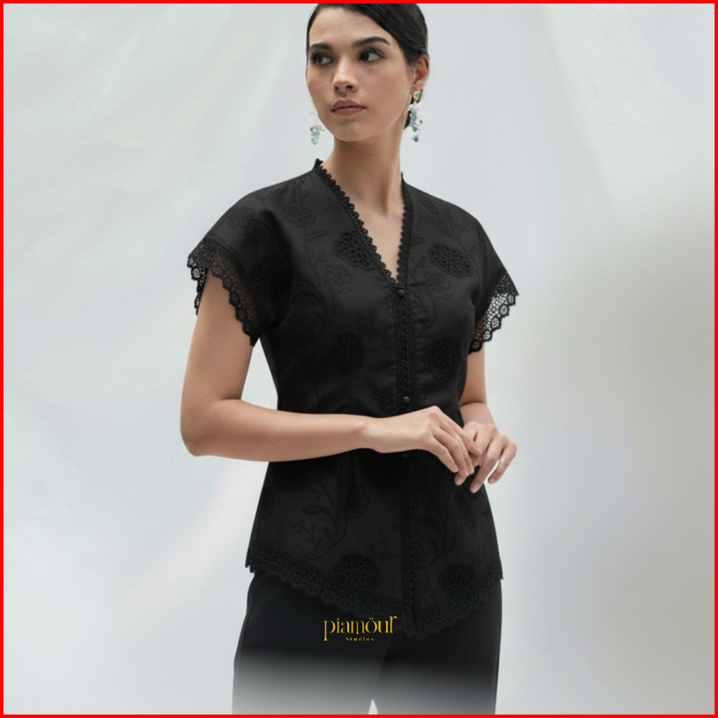 Piamour Aurora Top Kebaya Modern Casual Basic Outer Kebaya Encim Lengan Pendek Katun Embroidery Bordir Mix Renda Atasan