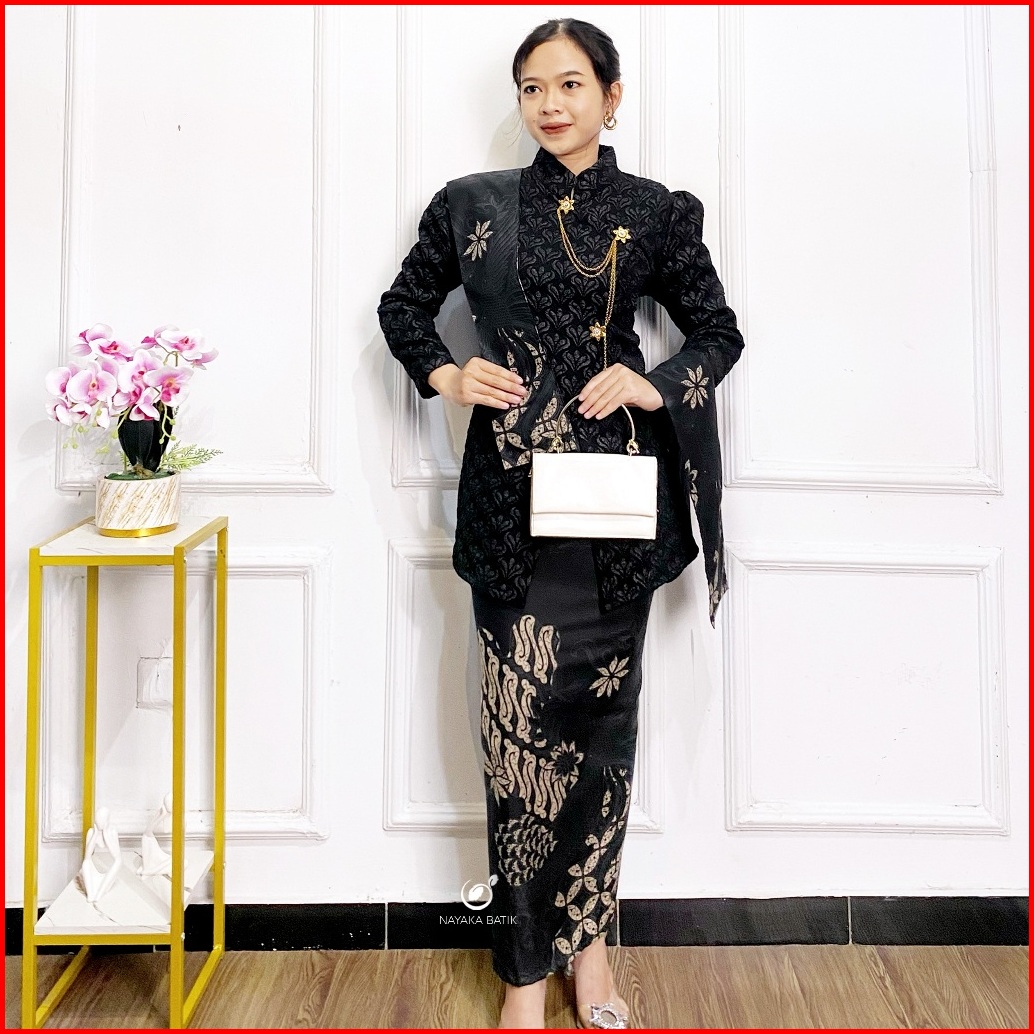 Free Bross Nayaka Batik - Setelan Kebaya Janggan Modern Fahira Ayu Fukuro Embos Kombinasi Katun Batik Halus Set Kondanga