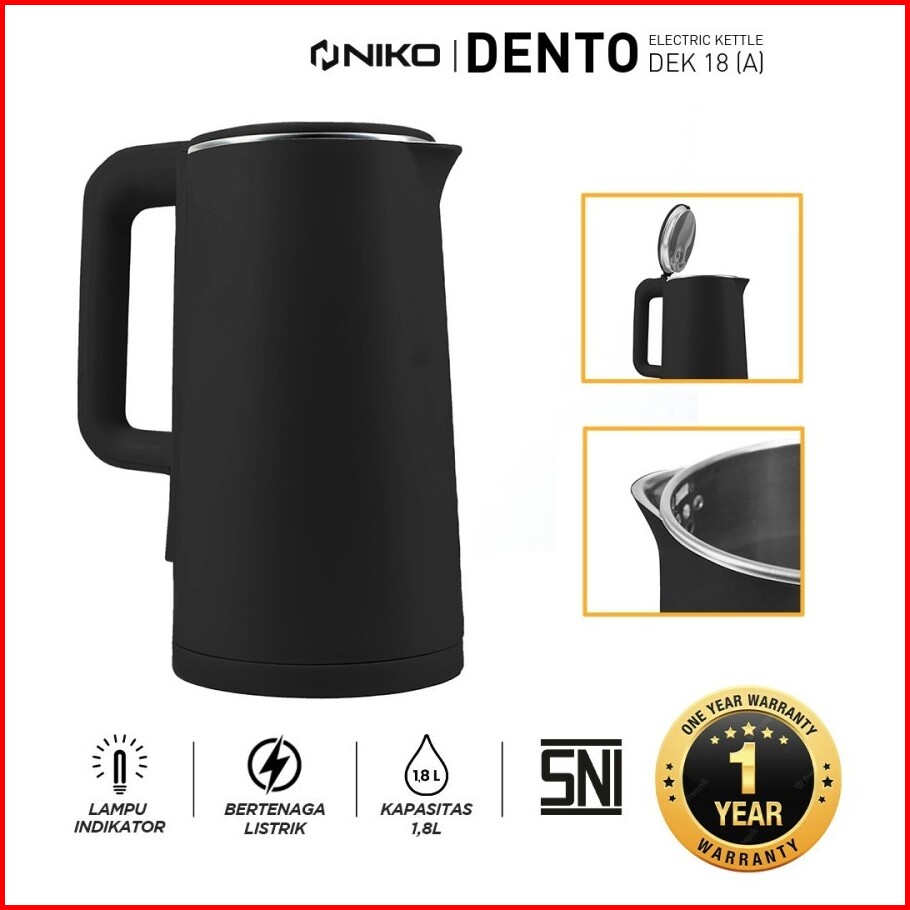 Teko Listrik Niko Dek 18 Dento 1 8 Liter Low Watt White Black Kettle Otomatis Hitam Putih Lampu Indikator Murah Garansi