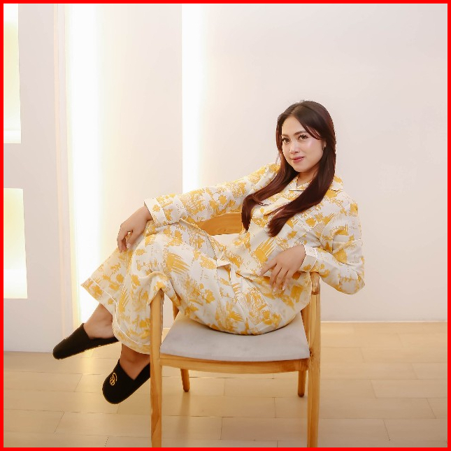 Ashlar Piyama Baju Tidur Set Wanita Motif Rayon Warna Kuning