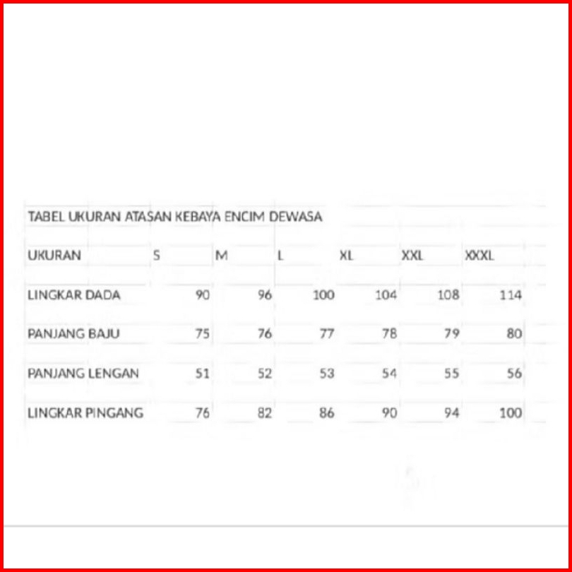 Baju Atasan Kebaya Encim Anak Sma Remaja Dewasa Putih Bersih Material Bahan Katun