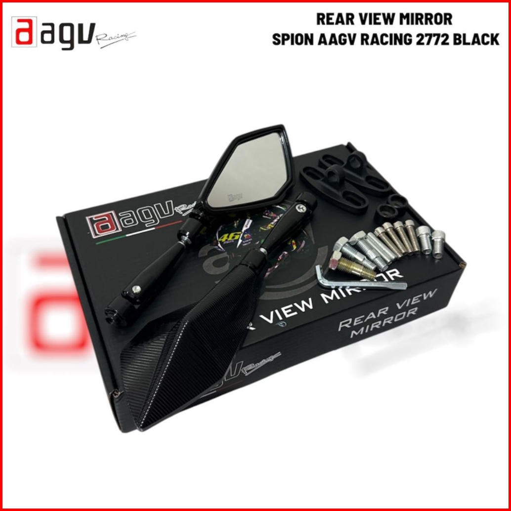 Aagv Racing - Spion Aagv Racing 2772 Model Lipat Black Series Kaca Putih Universal Semua Motor
