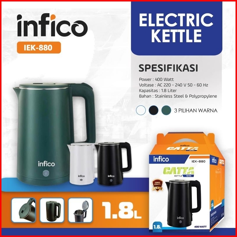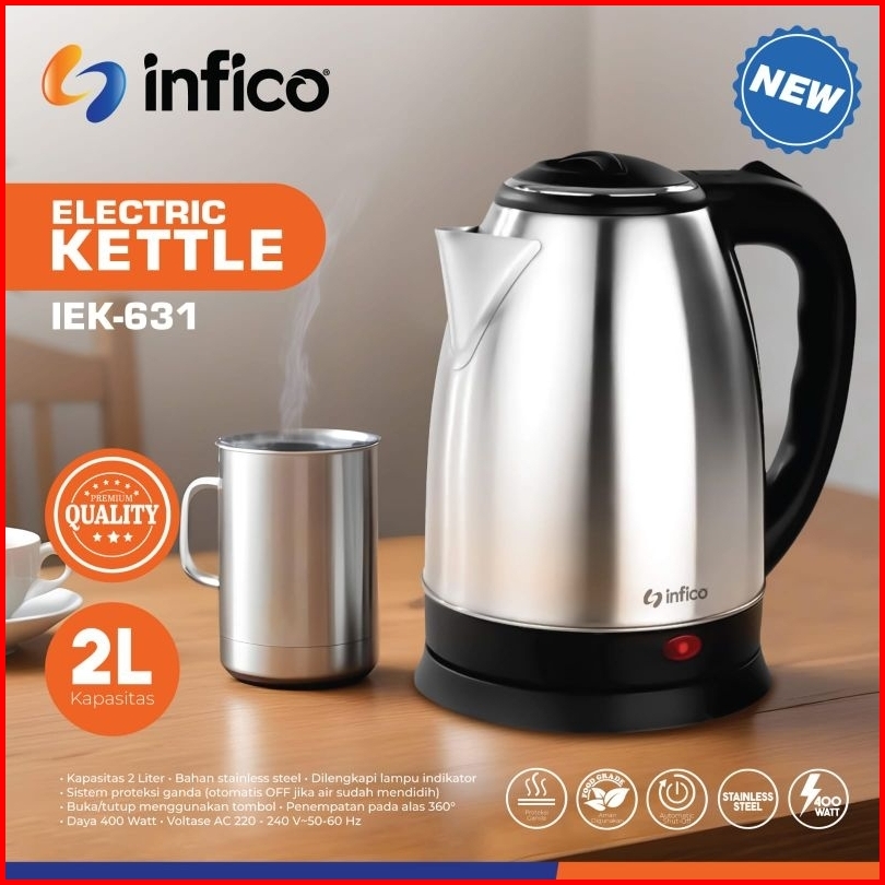 Infico Electric Kettle Teko Listrik 1.8l 2l Pemanas Air Listrik 400w Stainless Steel Otomatis Mati