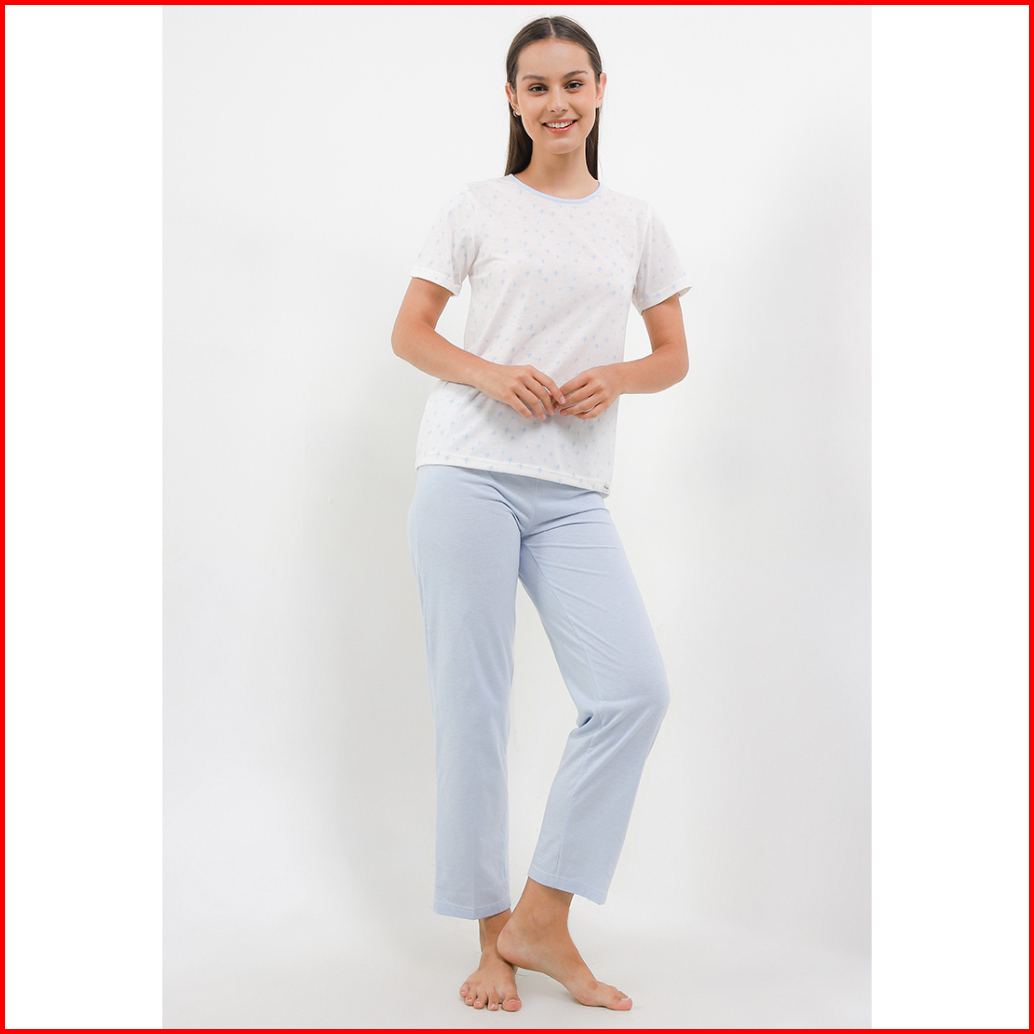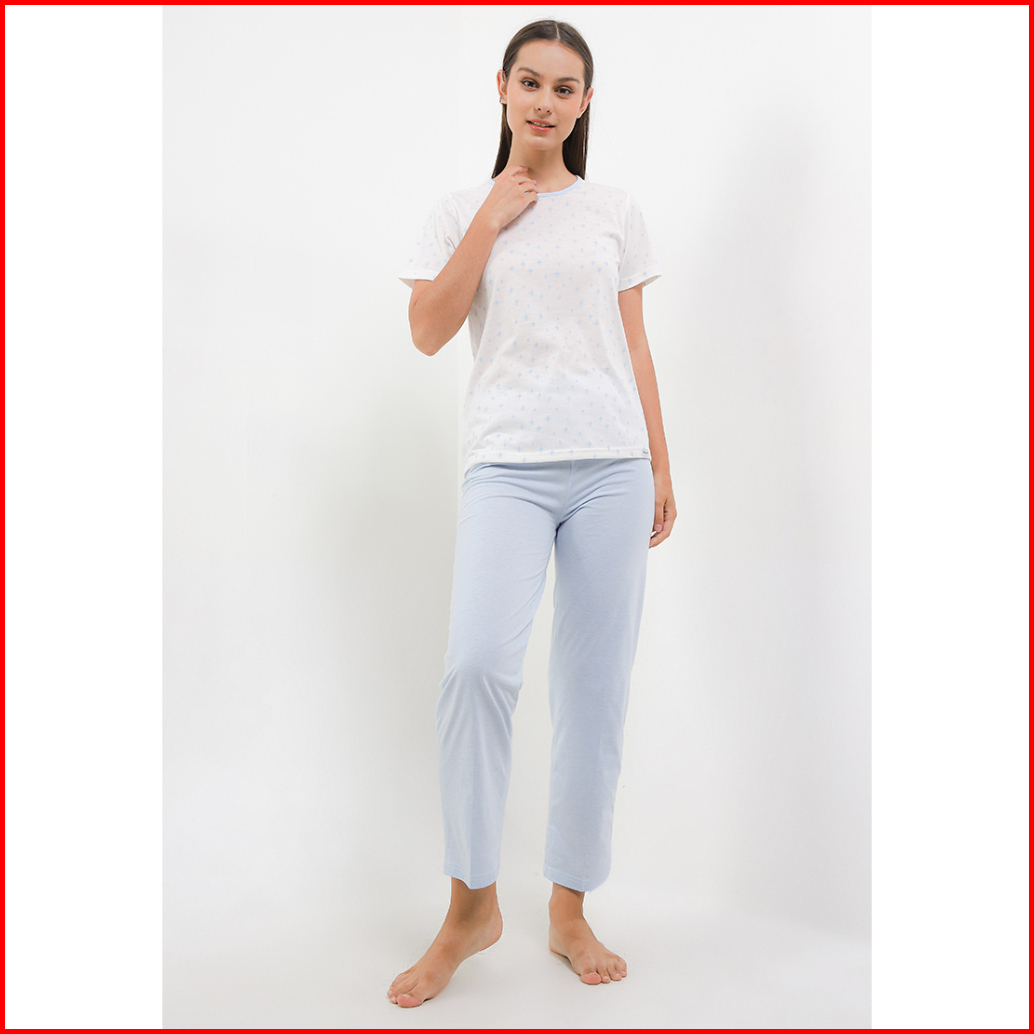 Baju Tidur Piyama Wanita Puppy Ladies Sleepwear S20240416 286 Lengan Pendek Celana Panjang Blue 82402 32024 214 Kado Gif