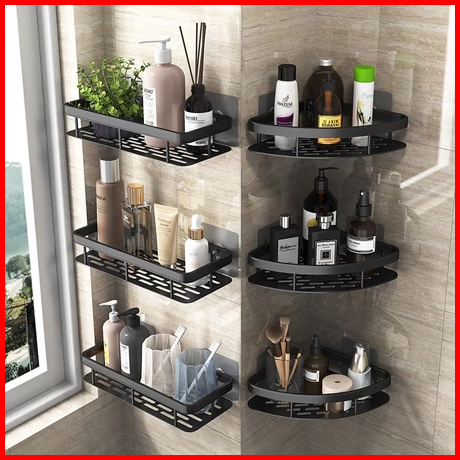Rak Sudut Kamar Mandi Stainless Steel Anti Karat Rak Tempel Dinding Tempat Sabun Shampoo Multifungsi Anti Air