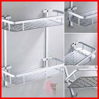 Rak Dinding Kamar Mandi Aluiminium 2 Susun Tempat Sabun Shampoo Peralatan Kamar Mandi
