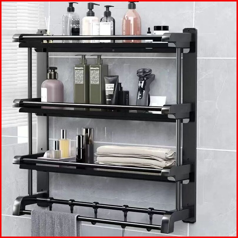 Rak Kamar Mandi Dinding Hitam Stainless Steel Rak Sabun Kamar Mandi Rak Multifungsi Rak Dapur-tahan Air Dan Tahan Karat