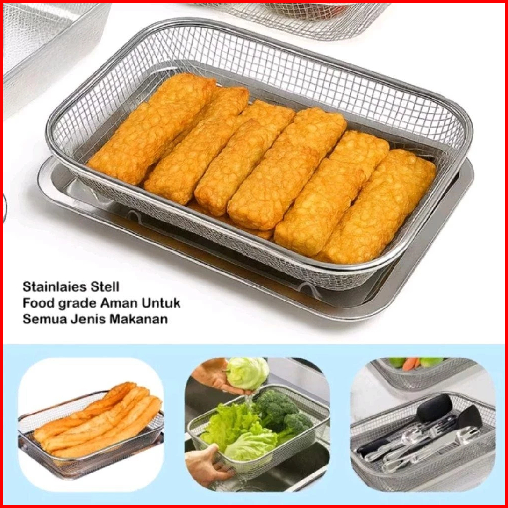 Keranjang Tirisan Stainless Tebal Anti Karat Peniris Minyak Sayur Serbaguna