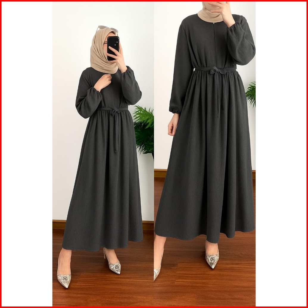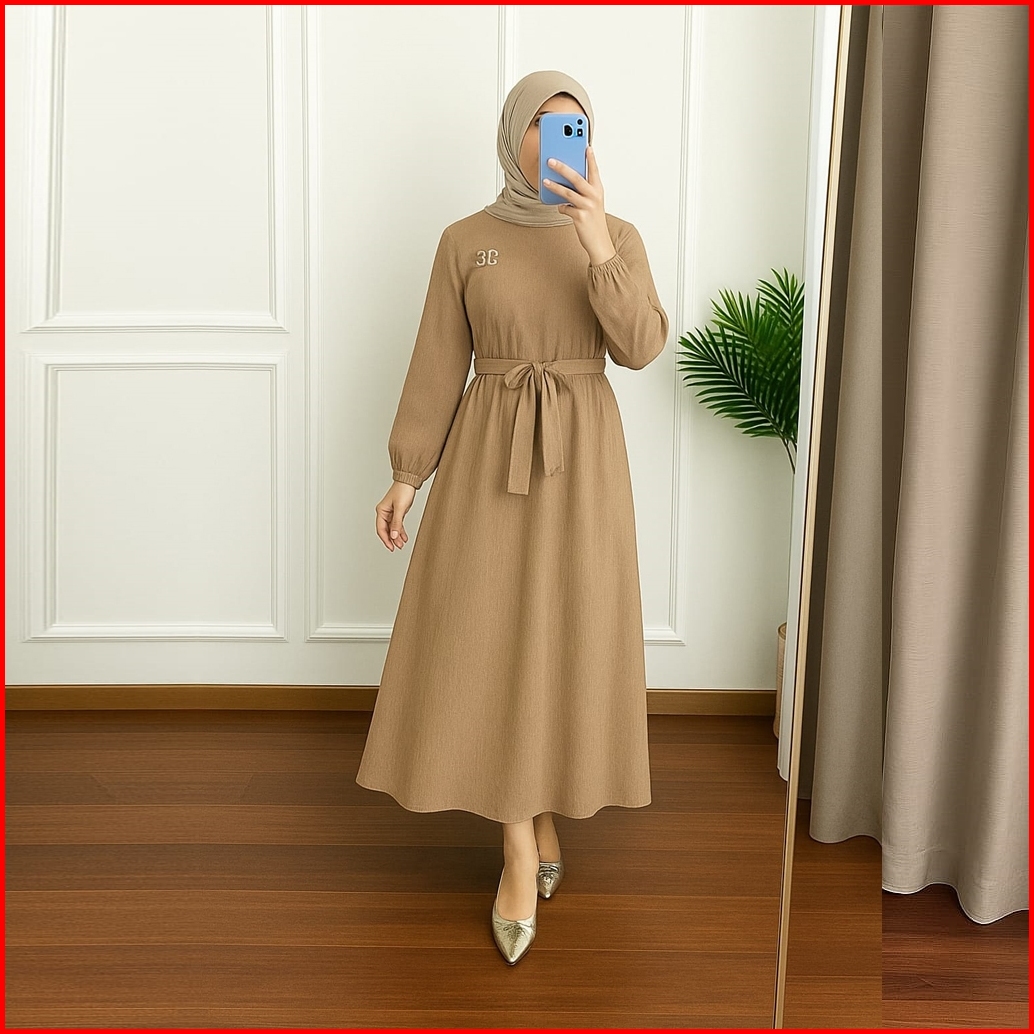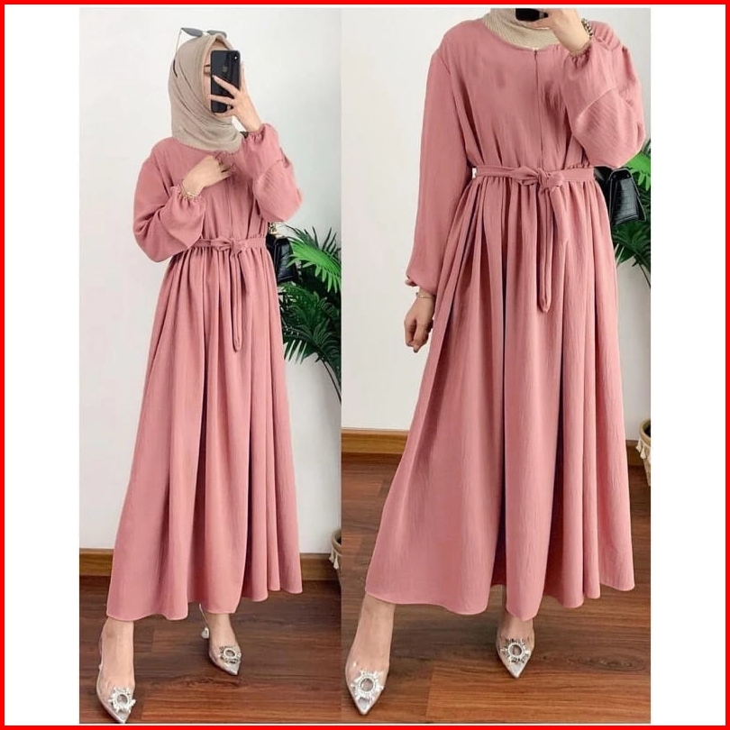 Gamis Midi Dress Wanita Lebaran Bahan Adem Jumbo