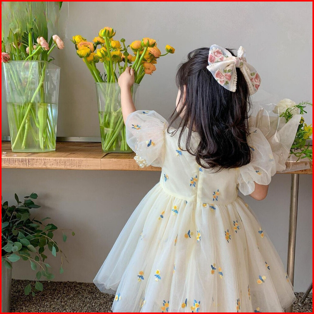 Lily Kids 1-6 Tahun Rok Anak Perempuan Musim Panas Gaun Lucu Bordir Baru Wanita Versi Korea Putri Gaun Putri Jala Berbul