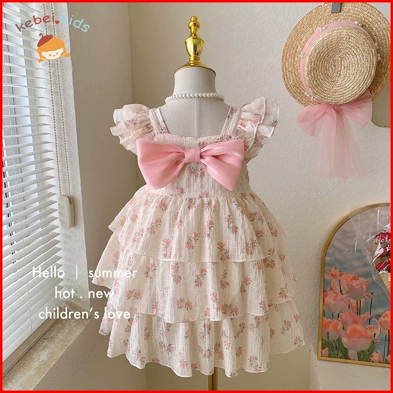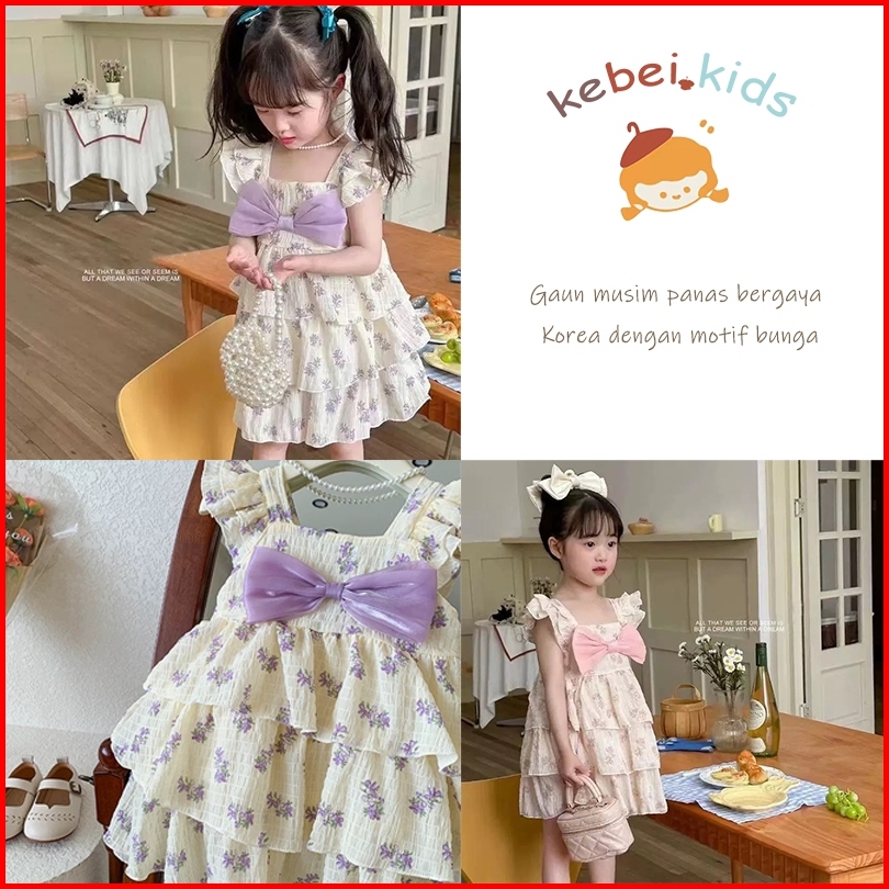 Kebei.kids--1-5tahun Lucu Dan Manis Gaun Putri Musim Panas Dress Panas Anak Dengan Pita Ungu Besar