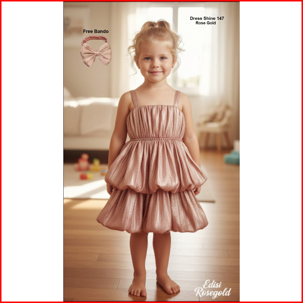 Ncr- Dress Anak Usia 3-6 Tahun Free Bando Gaun Anak Perempuan Glosy Shimer147