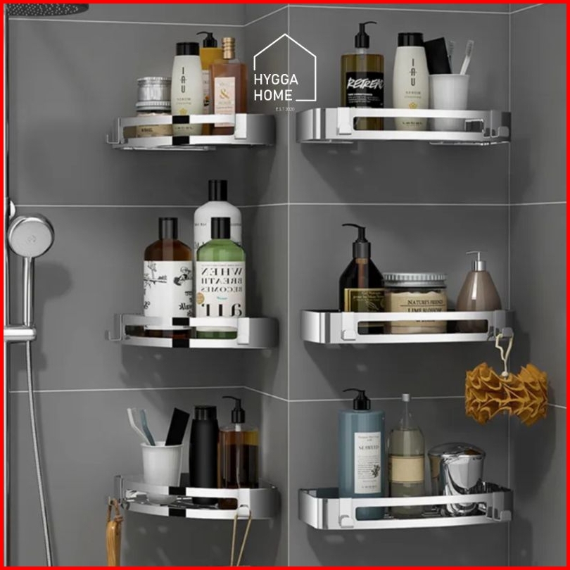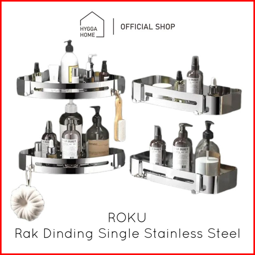 Hygga Home Roku Rak Dinding Kamar Mandi Rak Sabun Sudut Single Stainless Steel
