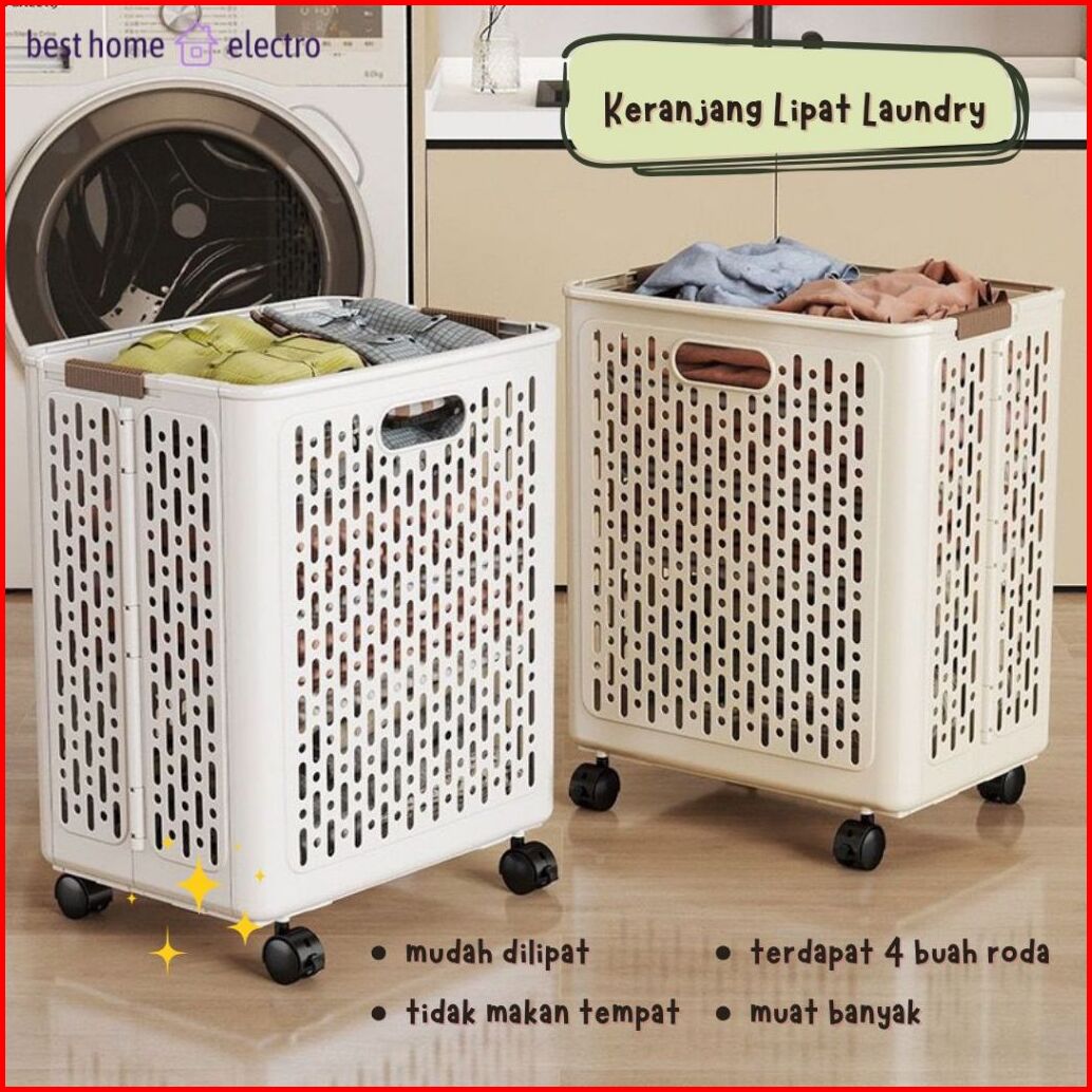 Besthome Keranjang Lipat Laundry Baju Kotor Dengan Roda Serbaguna