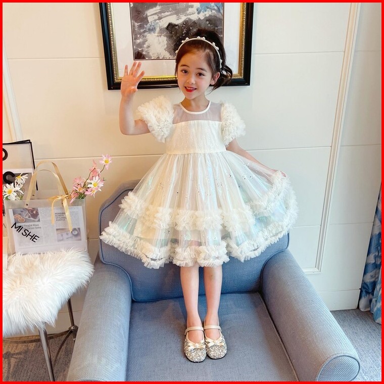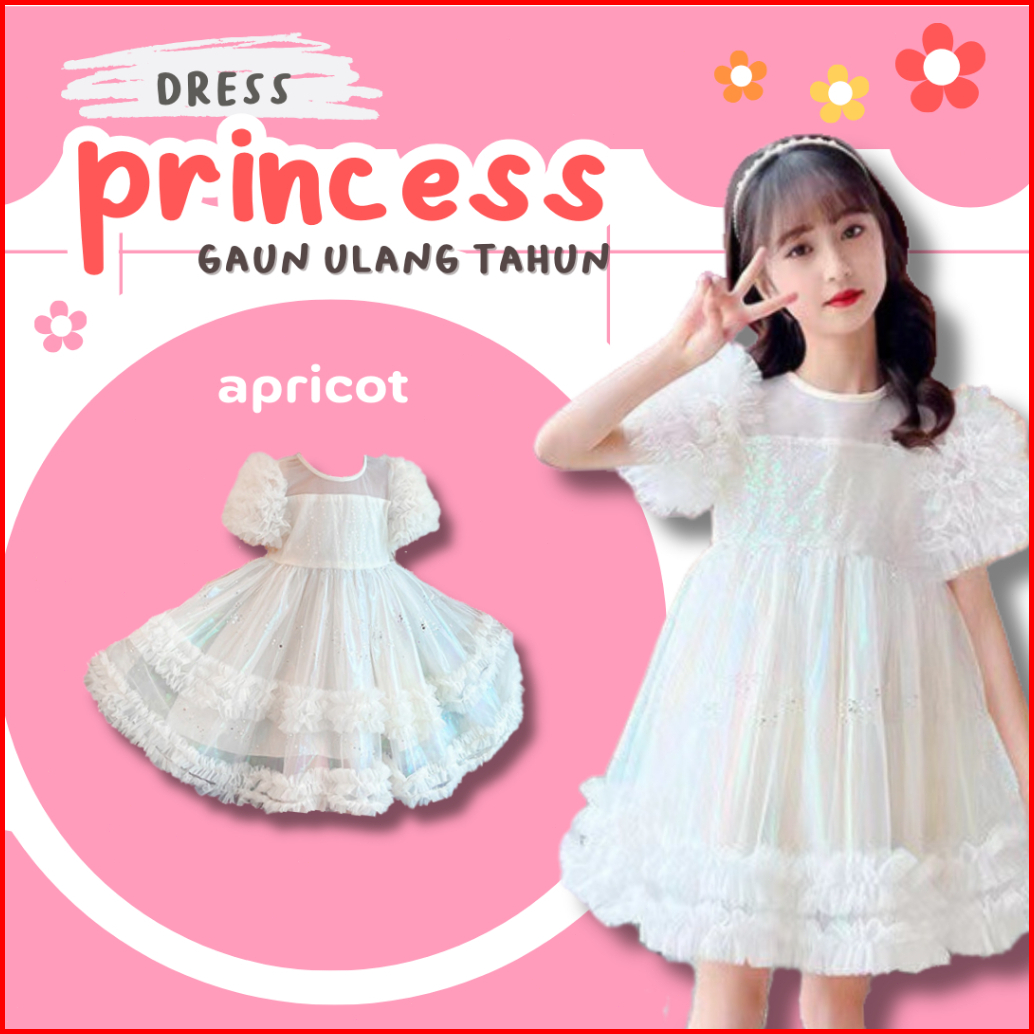 Mabebi 1-10 Tahun Gadis Gaun Pesta Ulang Tahun Aprikot Tutu Gaun Putri Lapisan Bahan Tulle Lembut Rok Anak Perempuan Ber