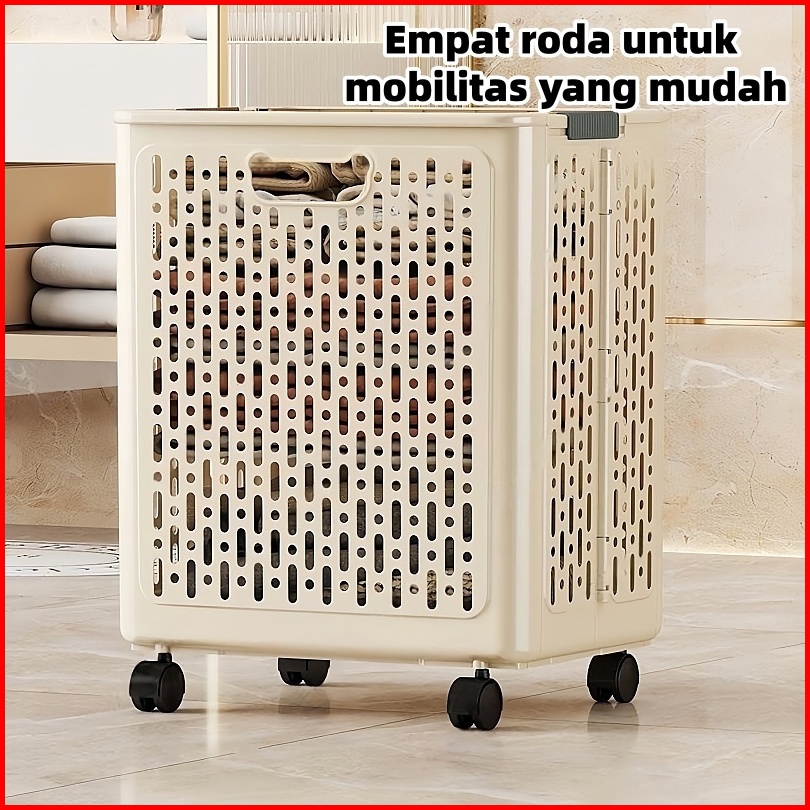 Laundry Basket Keranjang Lipat Serbaguna Tempat Baju Pakaian Kotor Dengan Roda Keranjang Laundry Lipat Portable Plastik