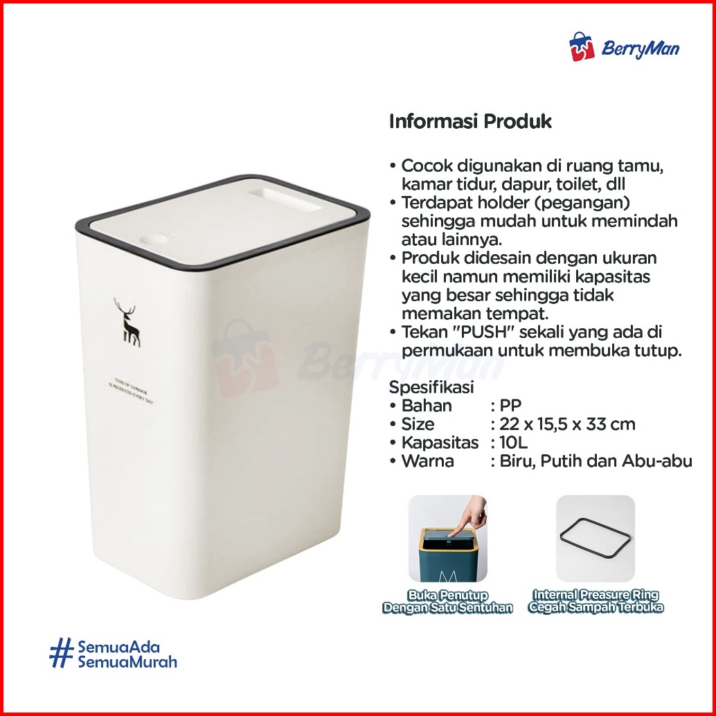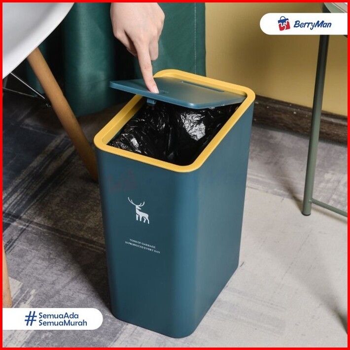 Tempat Sampah Minimalis Bentuk Persegi Kapasitas 10 Liter Tong Sampah Plastik Otomatis